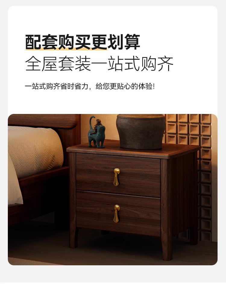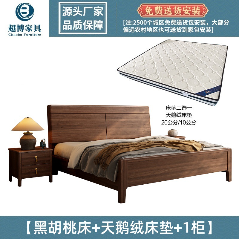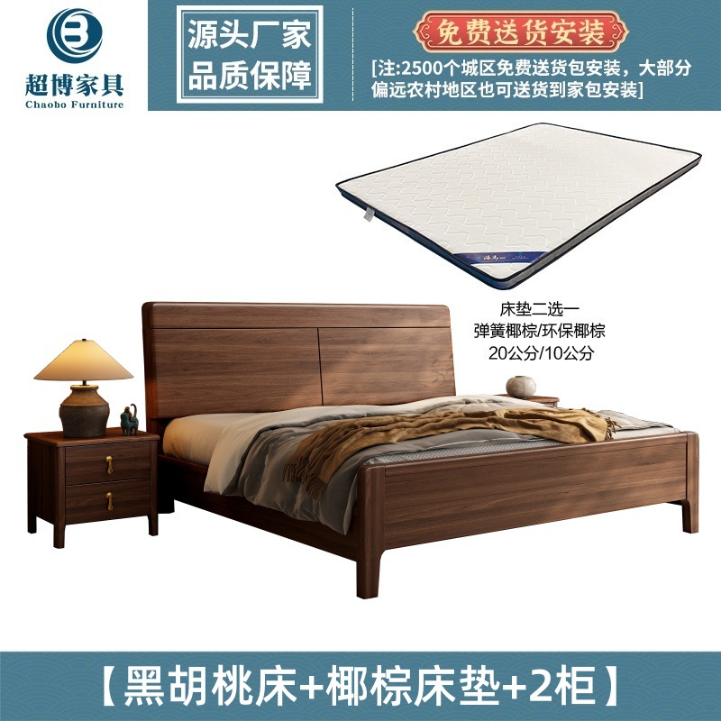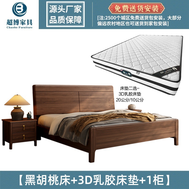 • 블랙 월넛 침대 + 3D 라텍스 매트리스 + 캐비닛 2개