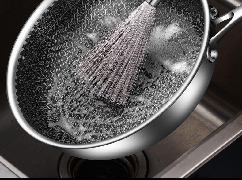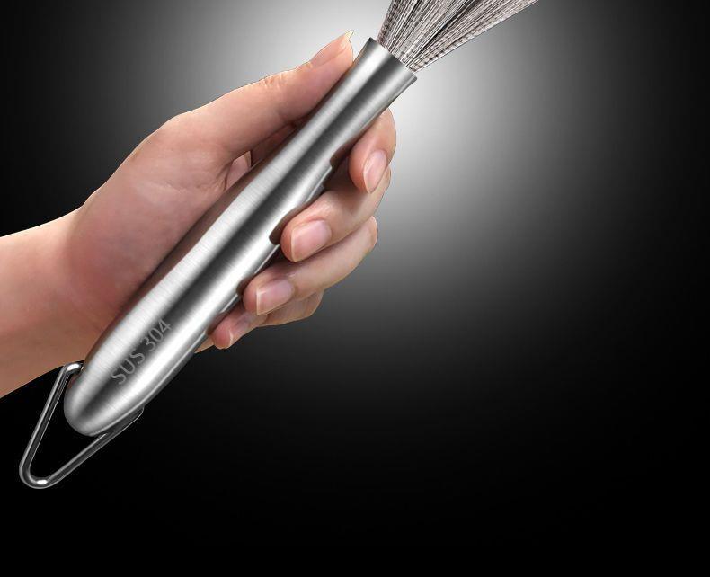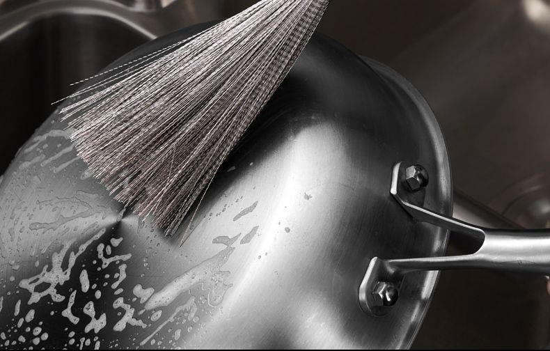 냄비 세척용 브러시, 주방 기름 제거용 브러시, 스테인레스 스틸 냄비 걸이형 긴 손잡이 와이어 브러시, Hongyang 청소 및 브러시