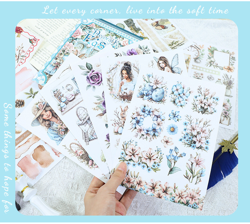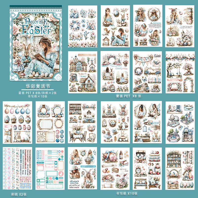 커팅 불필요 A5 필름 재생 부활절 스티커북 PET 스티커 중국풍 배경 수첩 소재 창의적인 스티커북스토어 가기