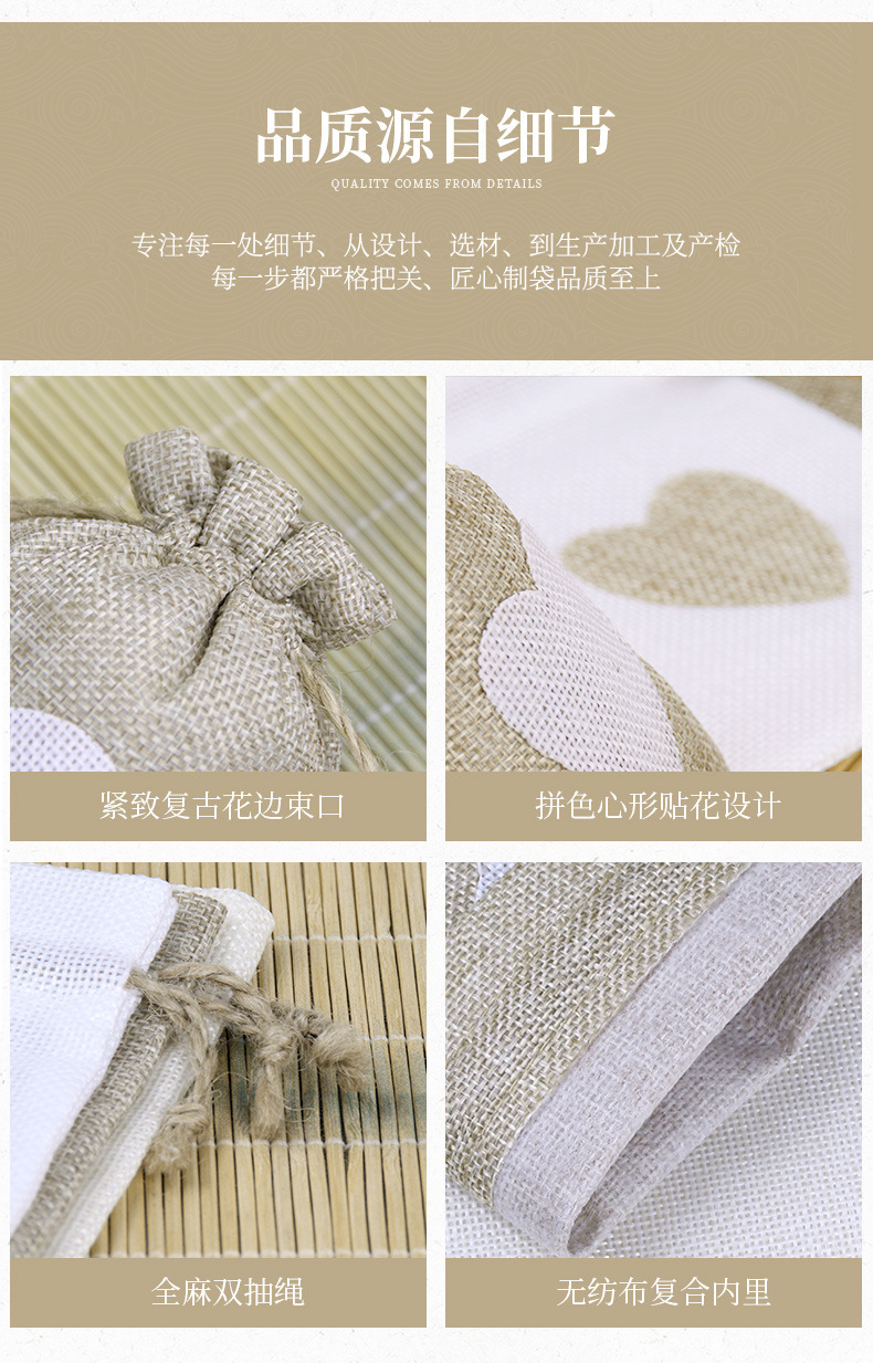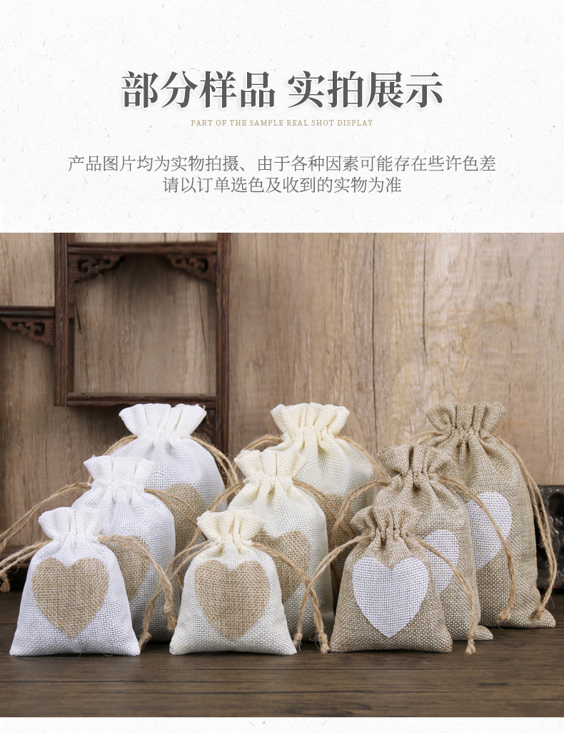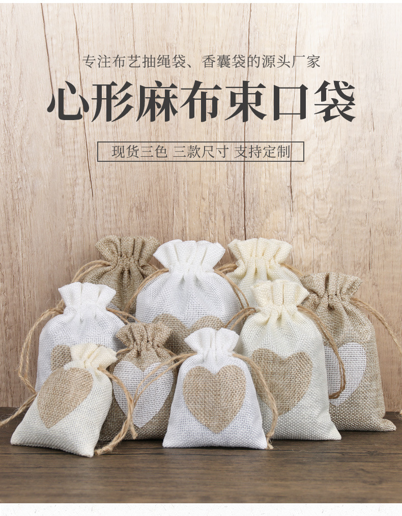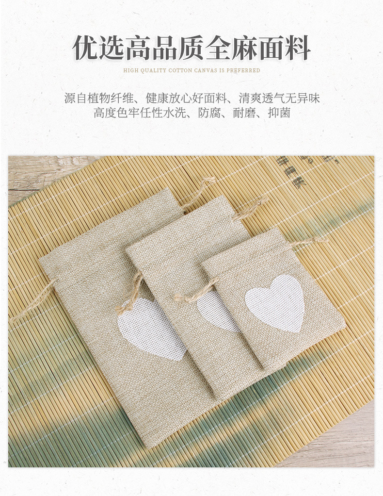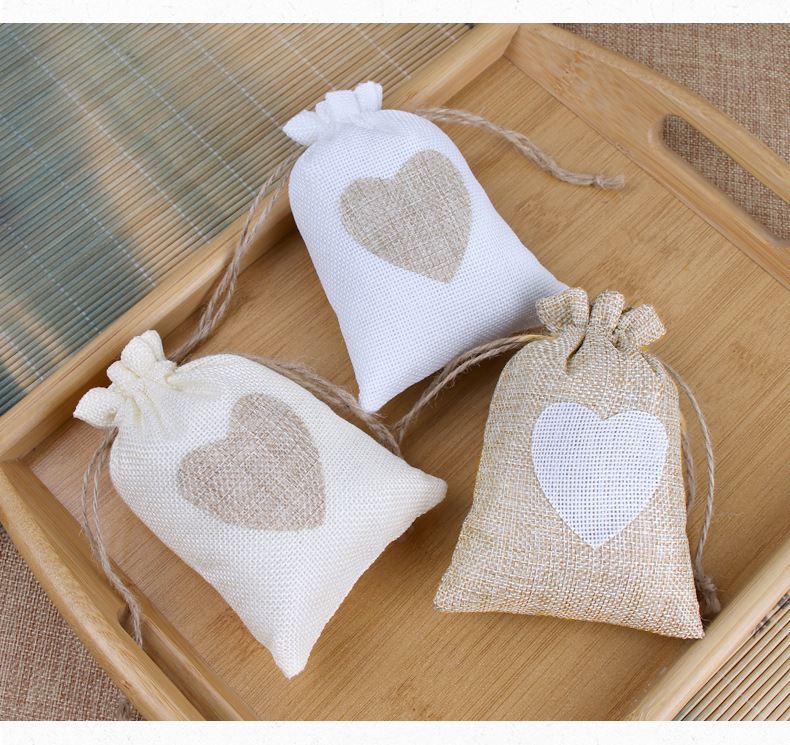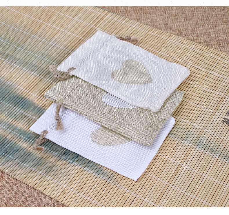 면 린넨 가방, 심플한 러브끈 린넨 가방, 씨앗 보관 가방, 이중 조임끈 포장 가방, 선물용 비즈 보관 가방