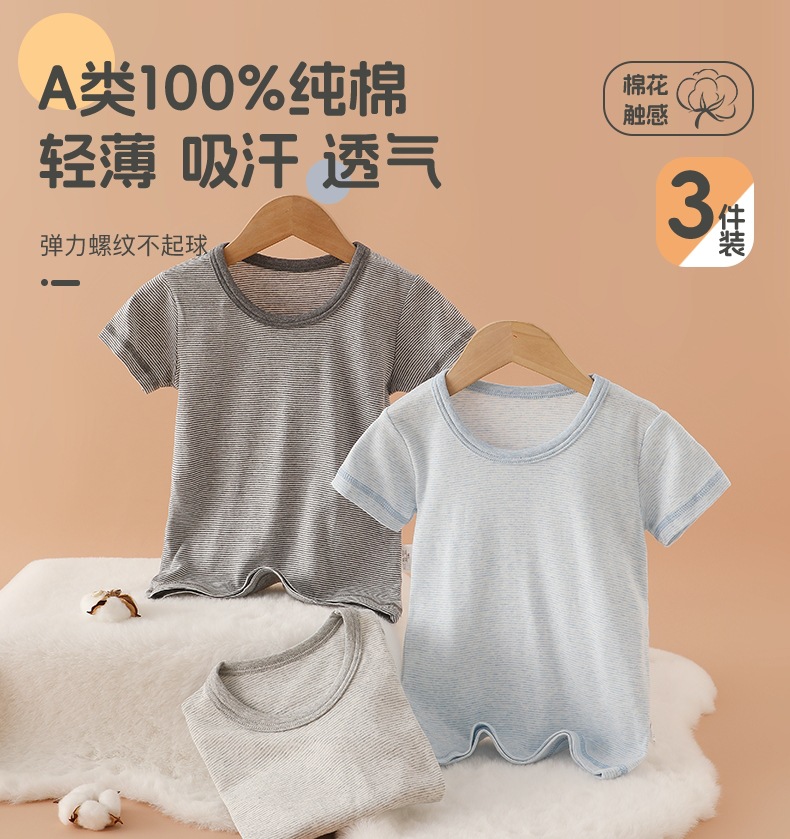 일본식 줄무늬 어린이 반팔 여름 얇은 탑 아기 티셔츠 남학생 여름 의류 학생 잠옷 순면 반소매스토어 가기