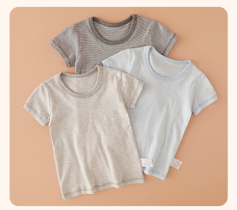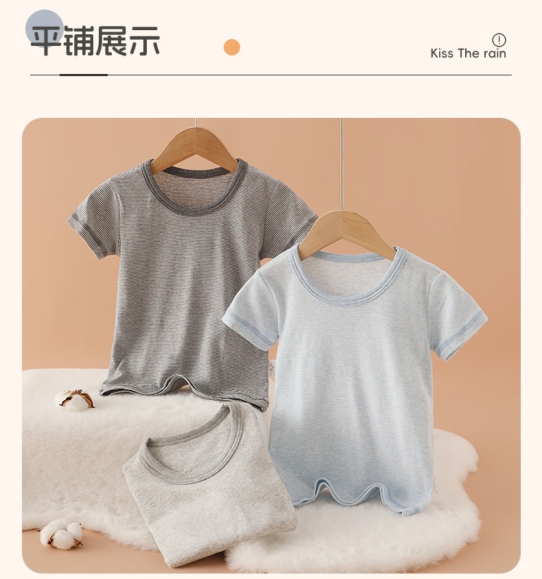 일본식 줄무늬 어린이 반팔 여름 얇은 탑 아기 티셔츠 남학생 여름 의류 학생 잠옷 순면 반소매