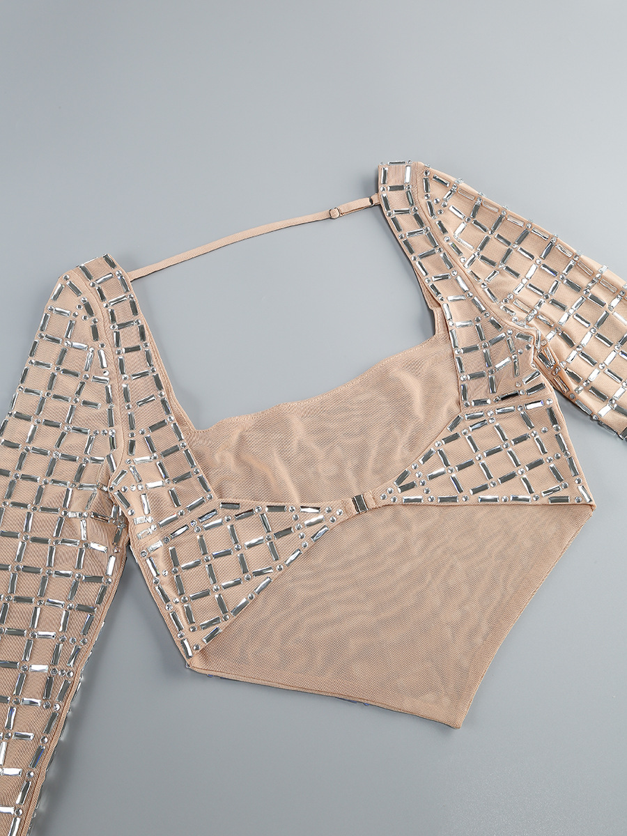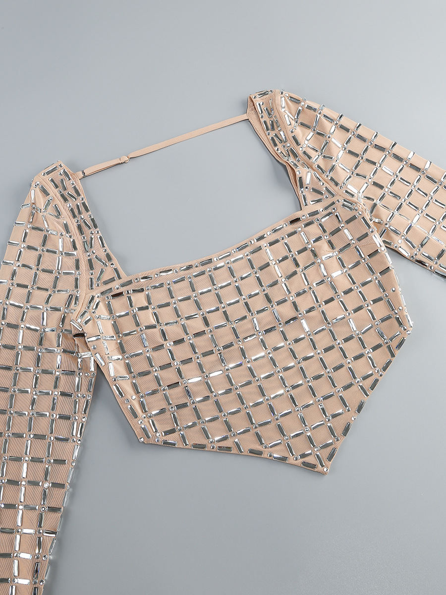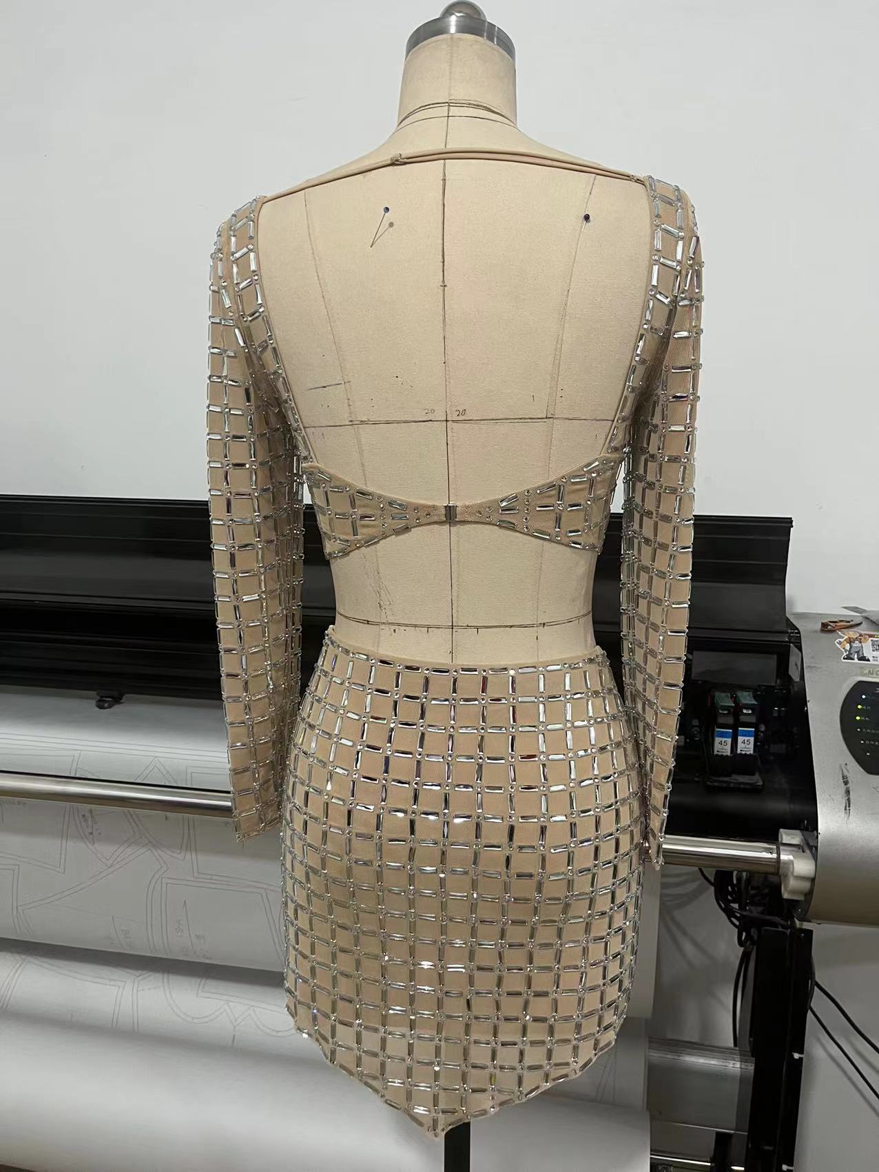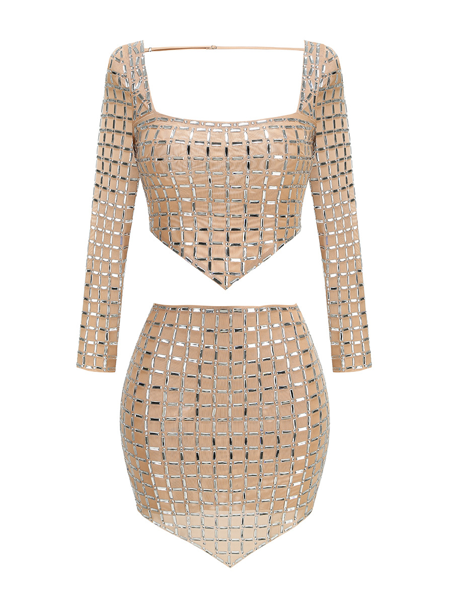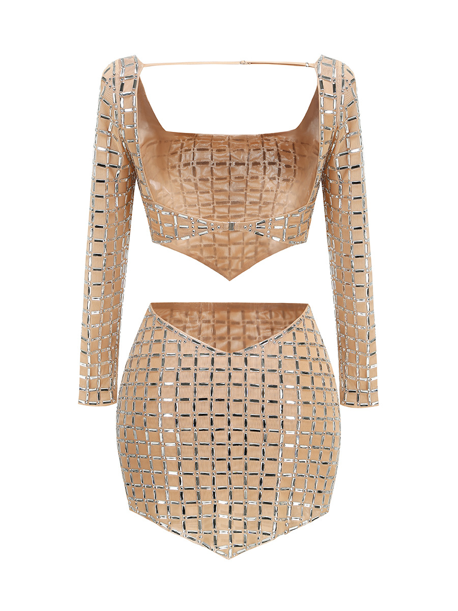 국경 간 봄과 여름 새로운 유럽과 미국의 대외 무역 패션 핫 드릴링 여성의 타이트한 긴 소매 허리 미니 스커트 패션 세트스토어 가기