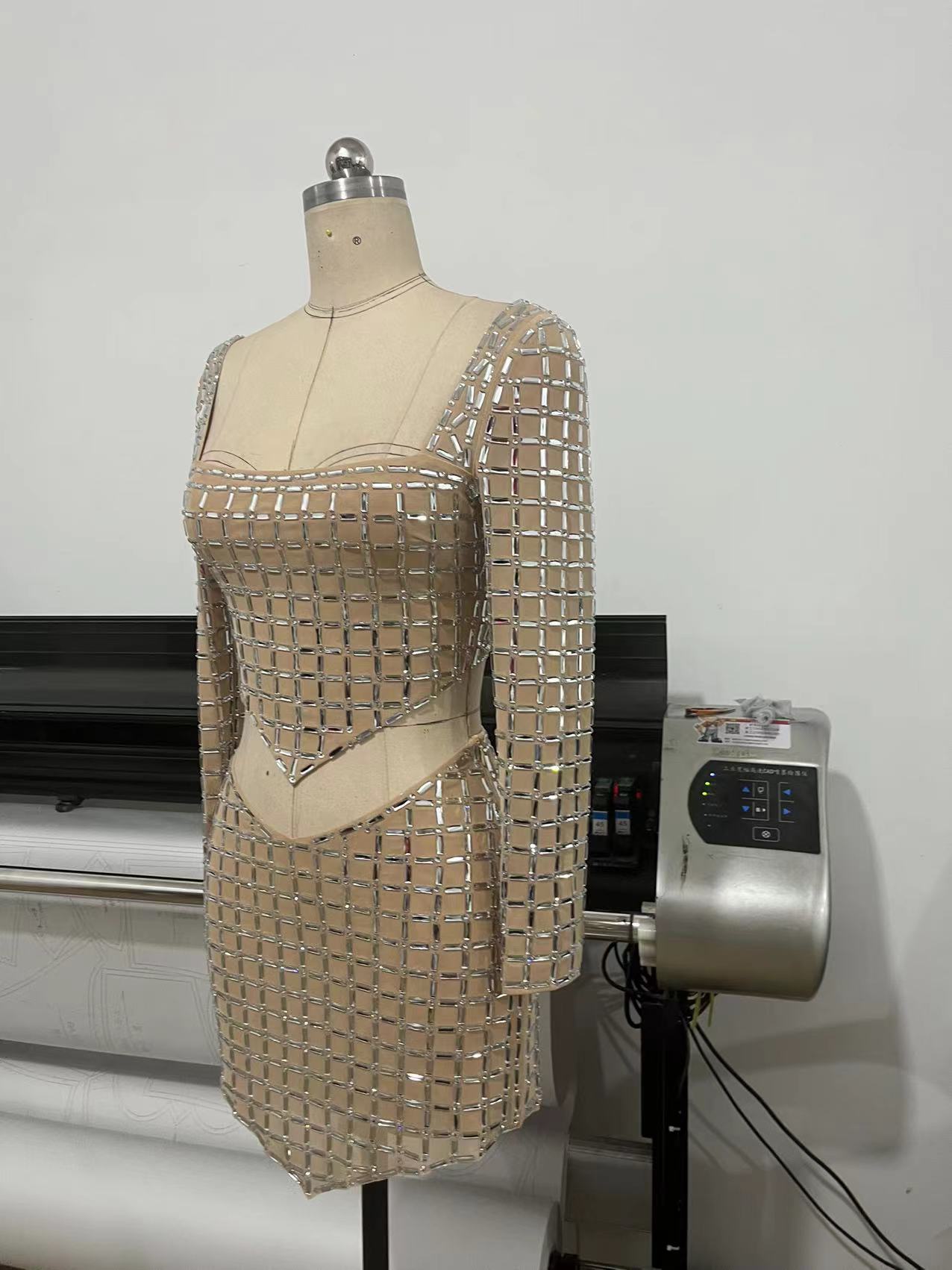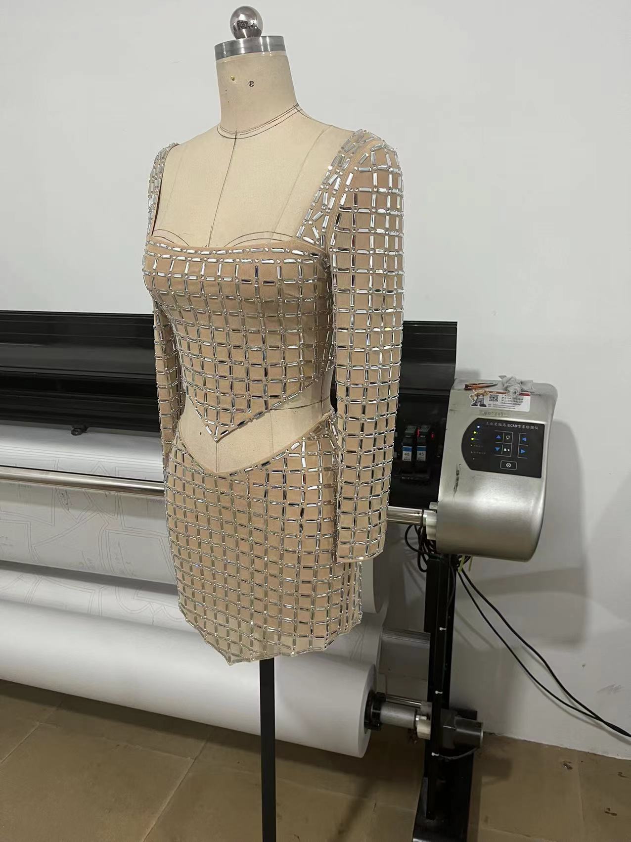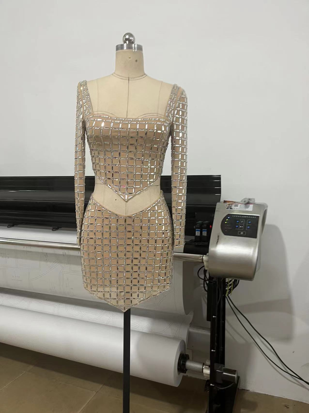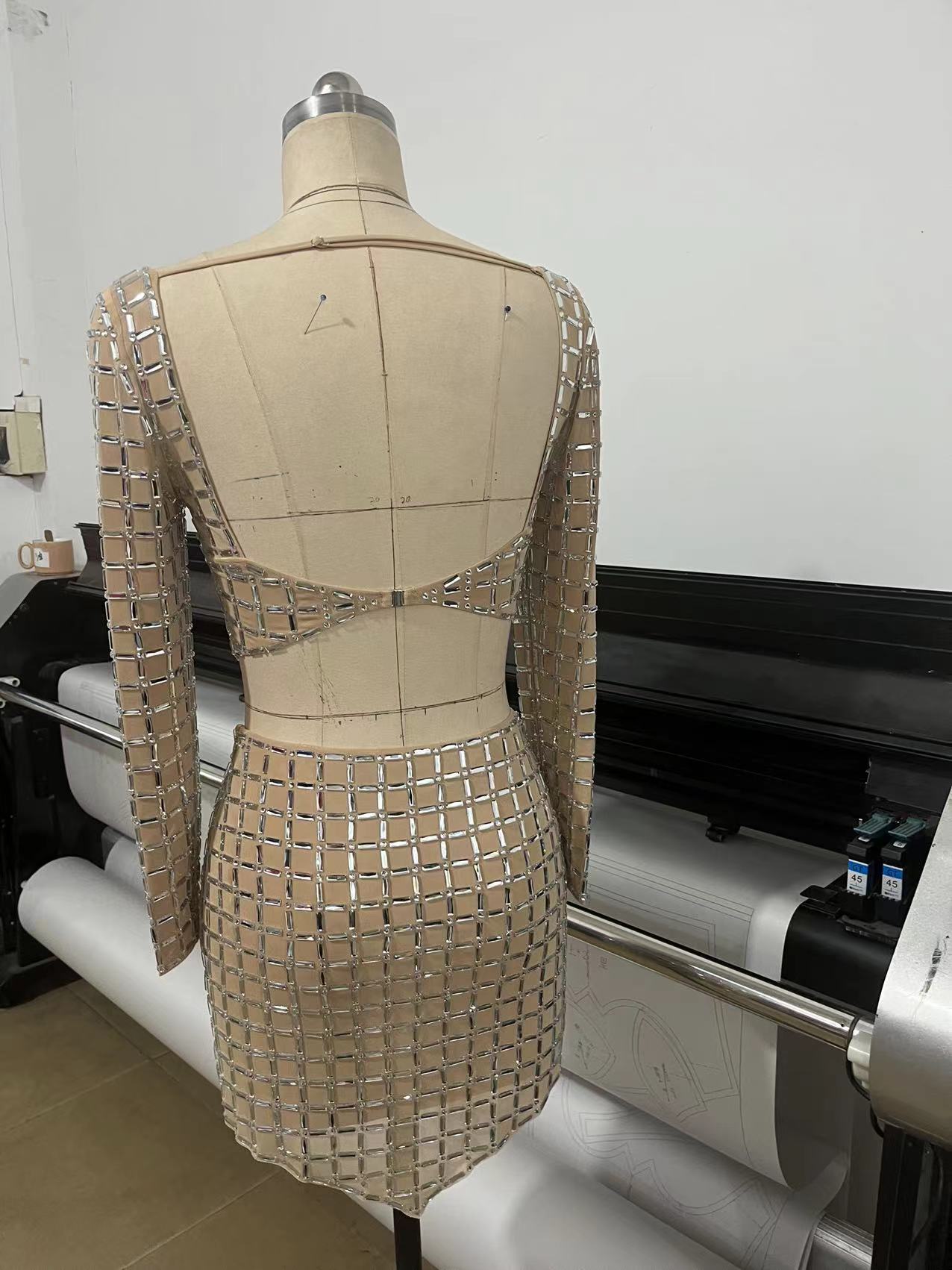 국경 간 봄과 여름 새로운 유럽과 미국의 대외 무역 패션 핫 드릴링 여성의 타이트한 긴 소매 허리 미니 스커트 패션 세트스토어 가기