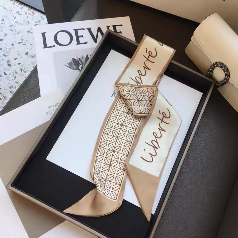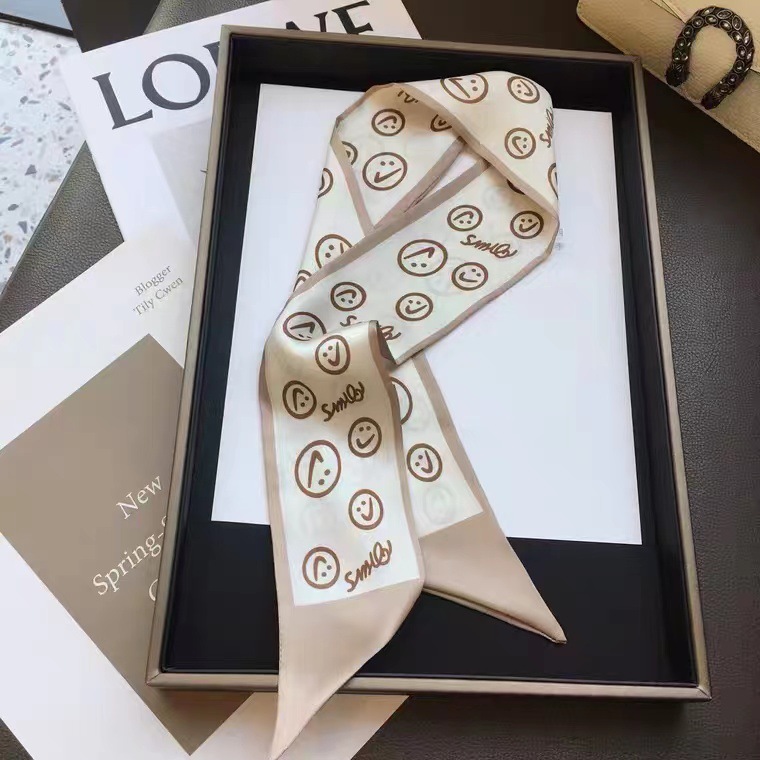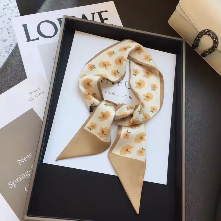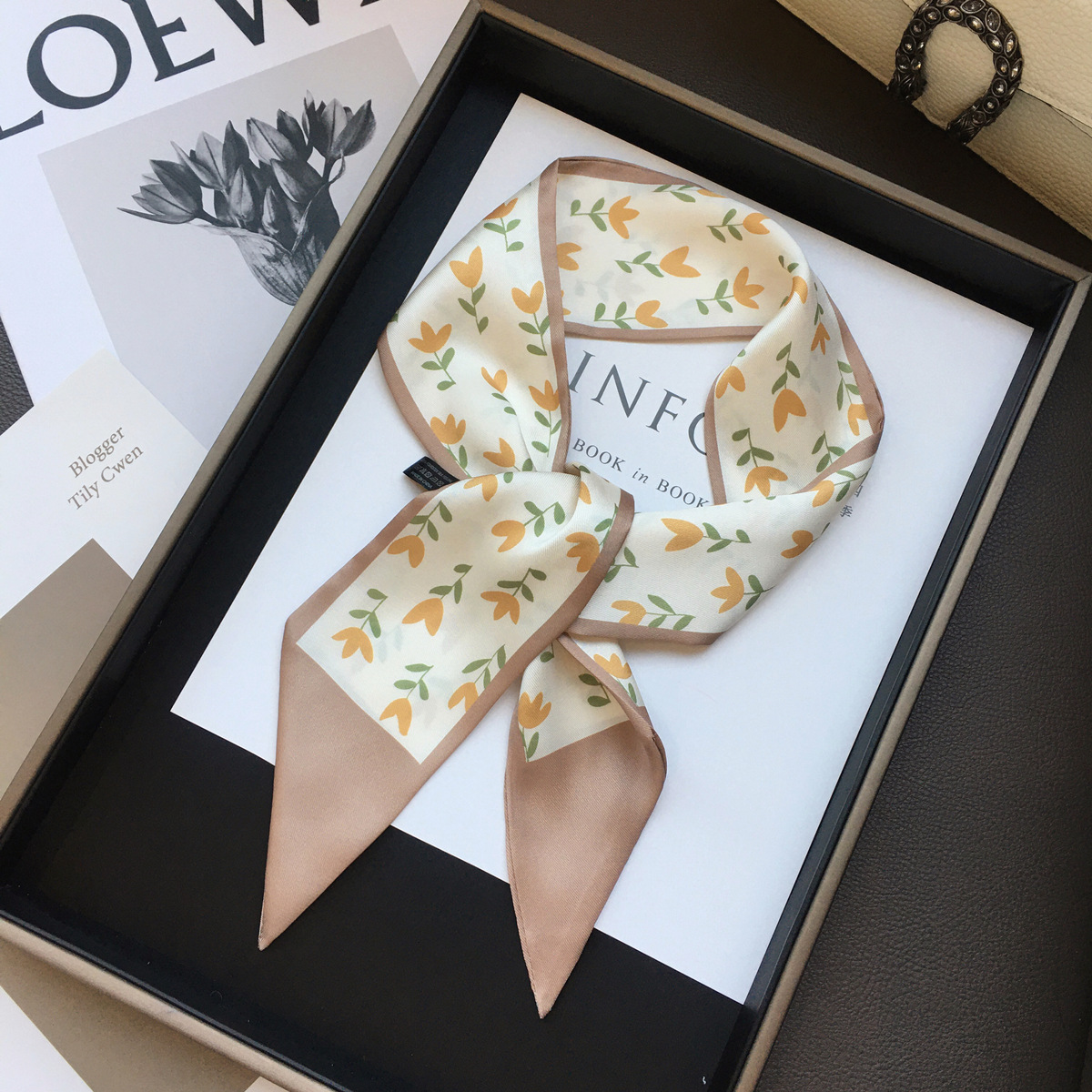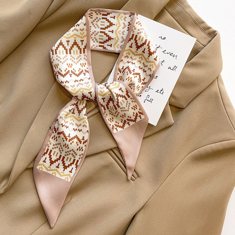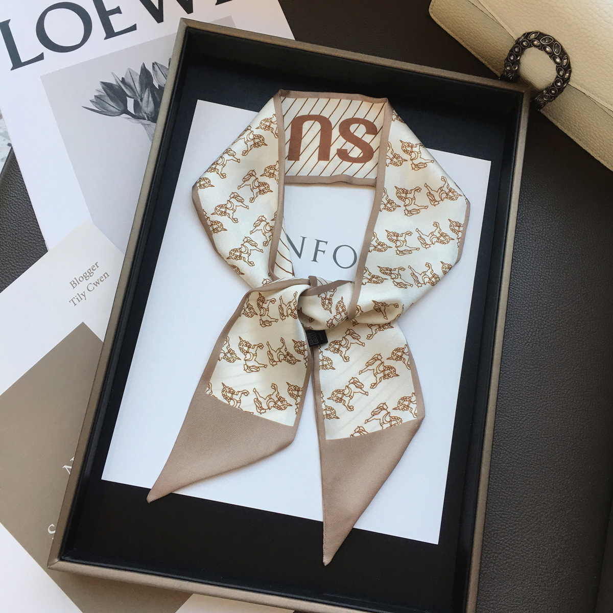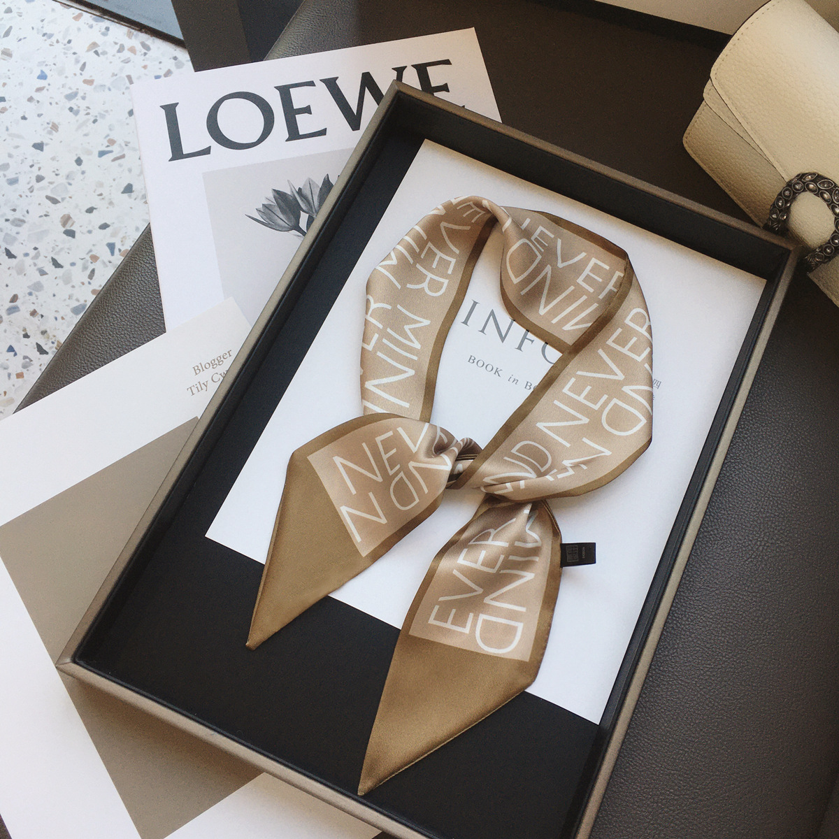 고급 카키 누드 한국 스타일 Ins 스타일 작은 실크 스카프 리본 헤어 스트랩 장식 봄과 가을 전문 스카프스토어 가기