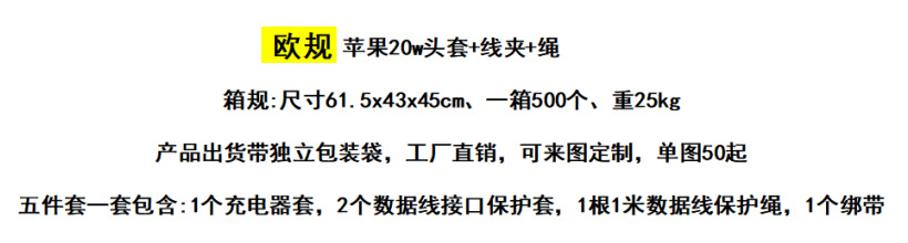 EU Apple 16plus 충전기 보호 커버 20w 고속 충전 iPhone15/14 데이터 케이블 보호 커버 로프