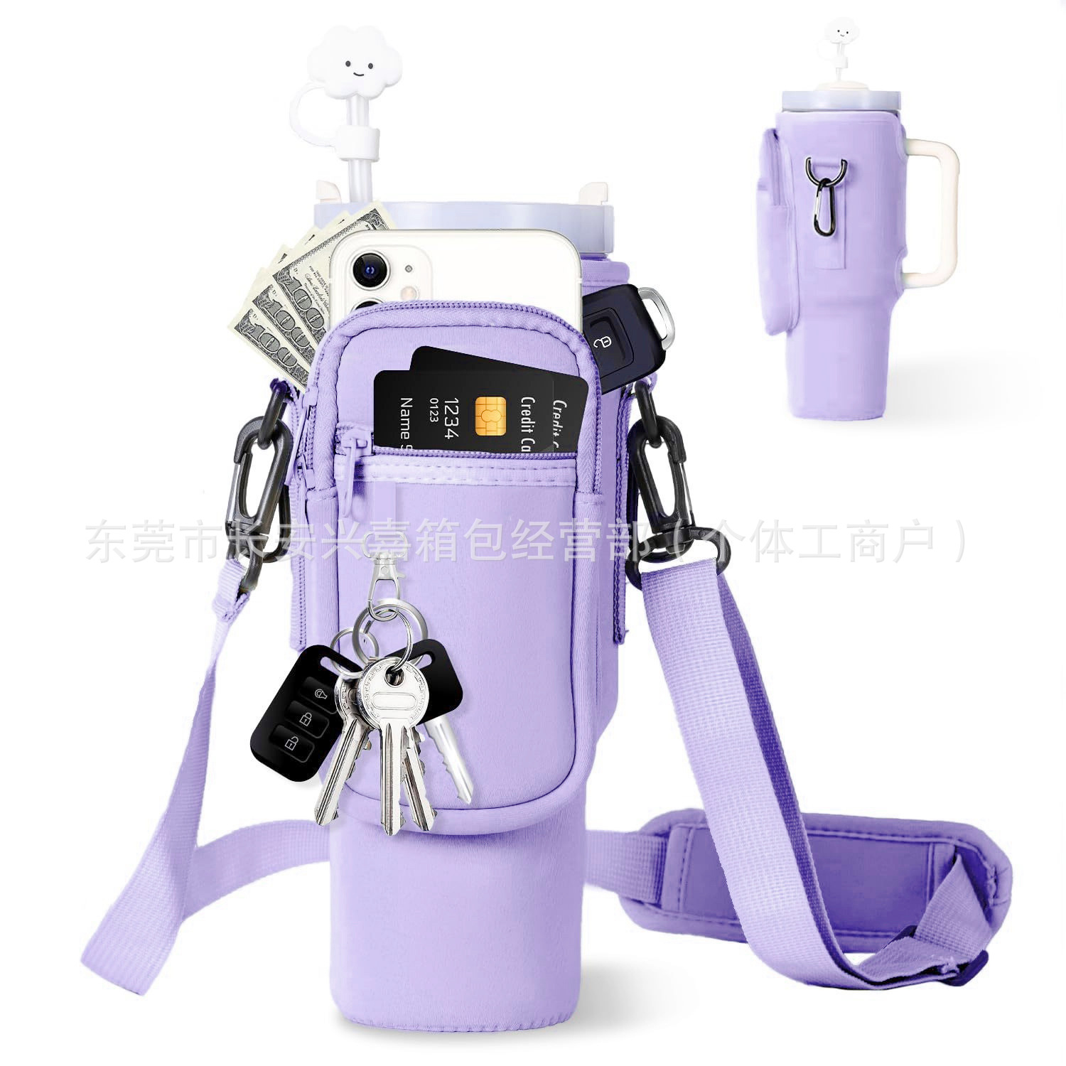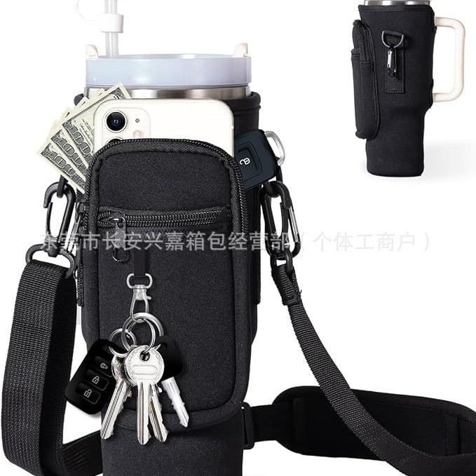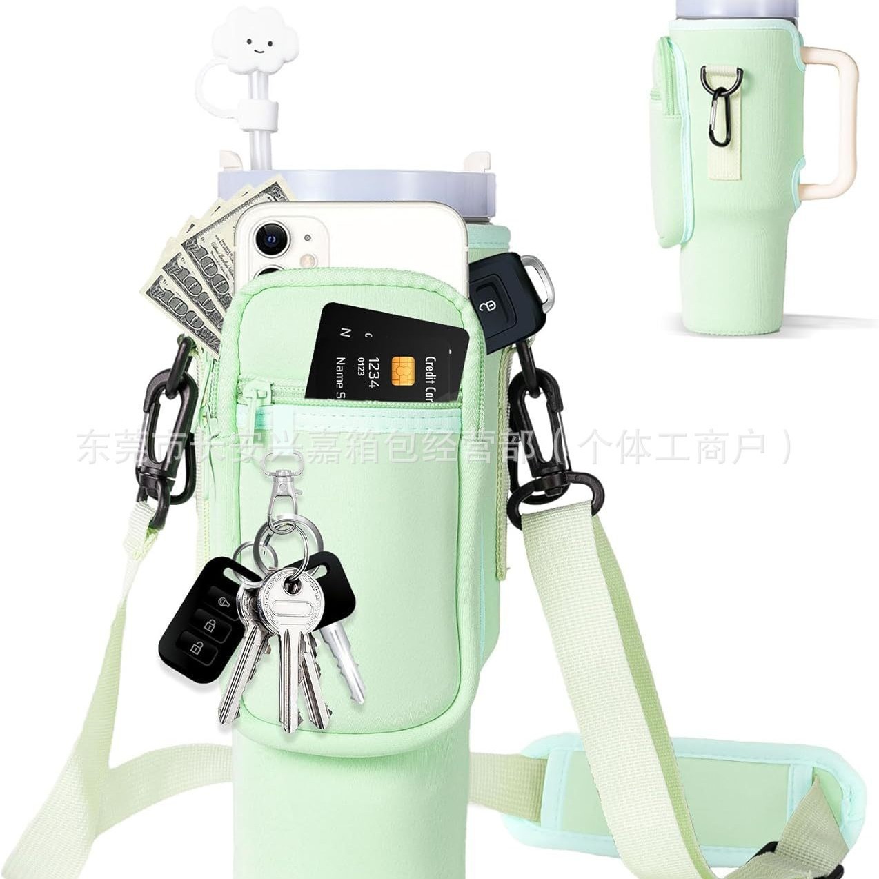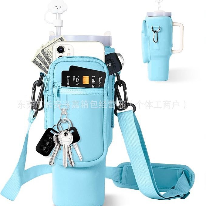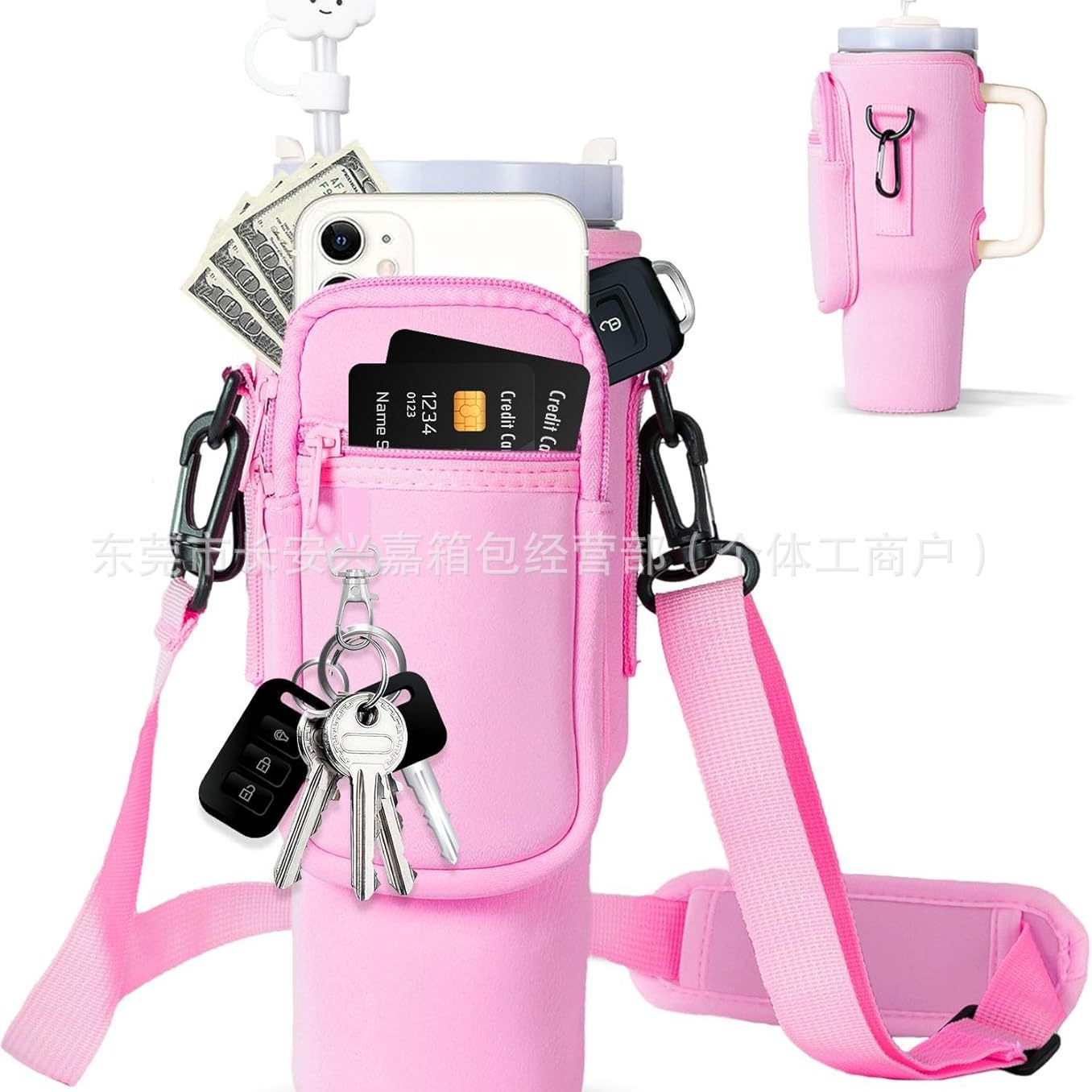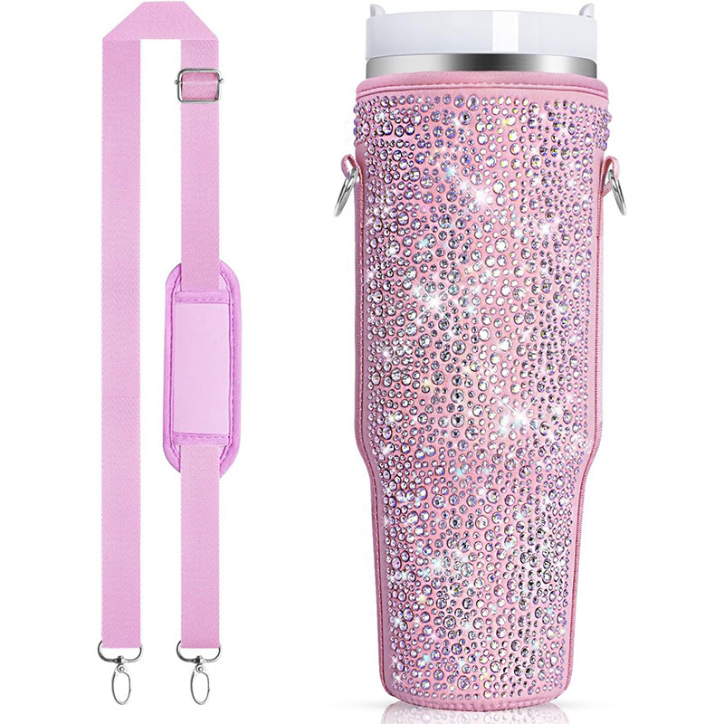 재고 있음 크로스보더 40OZ Bingba 반짝이는 물병 컵 커버 다이아몬드 진주 빛 핸드백 조절 가능한 병 커버 크로스 바디 백스토어 가기