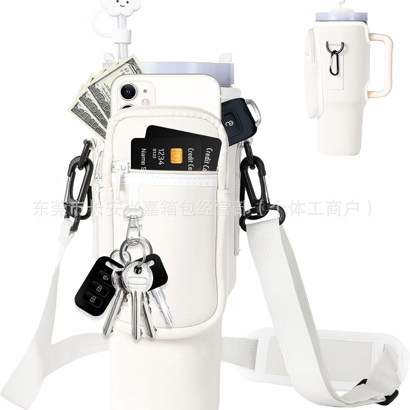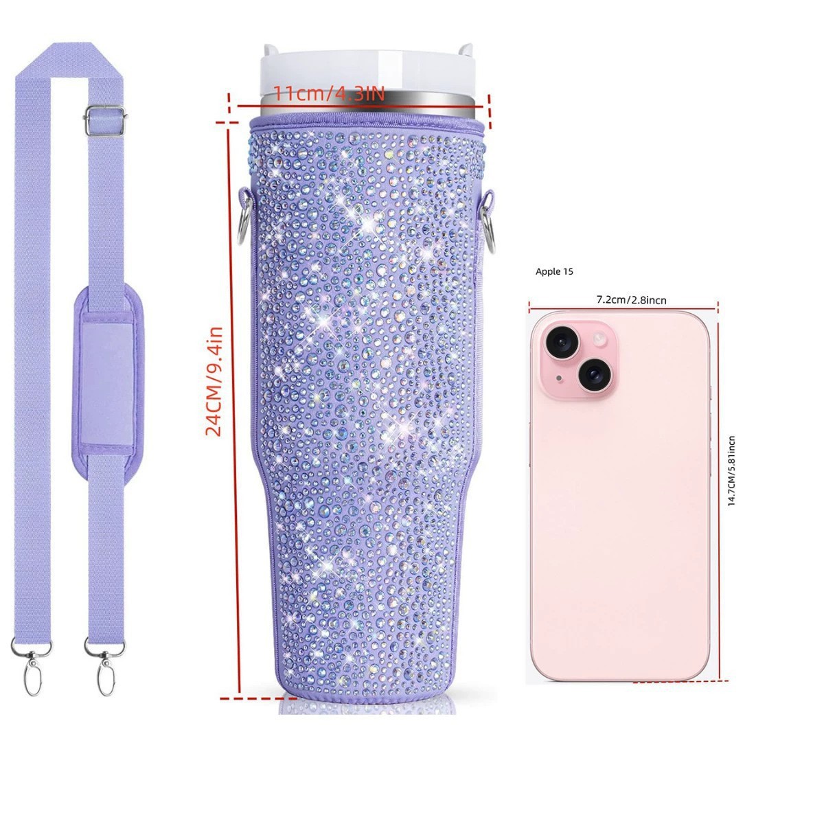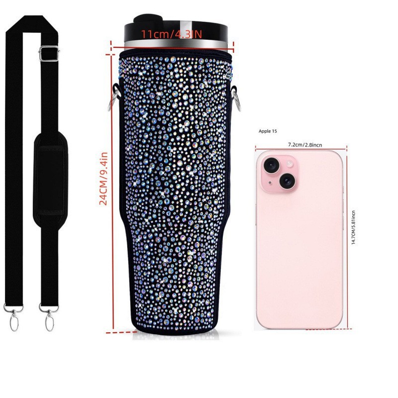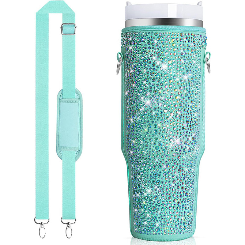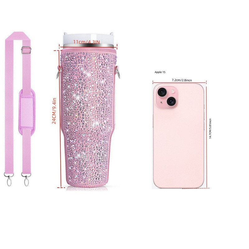 재고 있음 크로스보더 40OZ Bingba 반짝이는 물병 컵 커버 다이아몬드 진주 빛 핸드백 조절 가능한 병 커버 크로스 바디 백