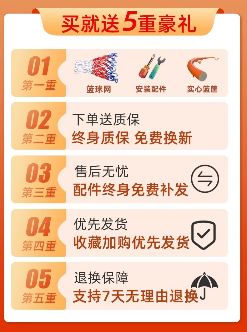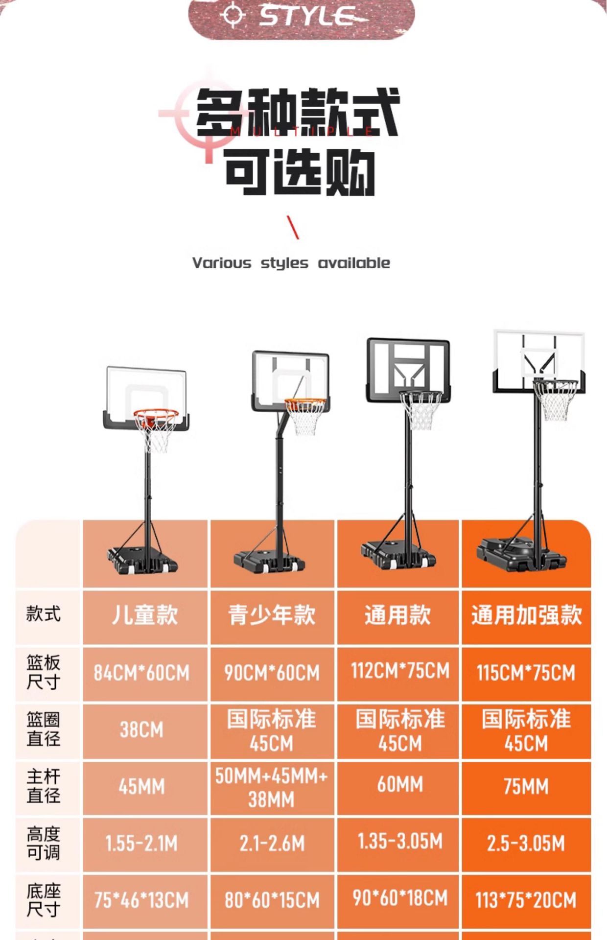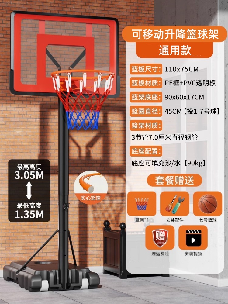 • 유니버설 모델 [초대형 리프팅 범위] 검정색과 빨간색, 무료 사이즈 7 농구공 + 액세서리 풀 세트 + 솔리드