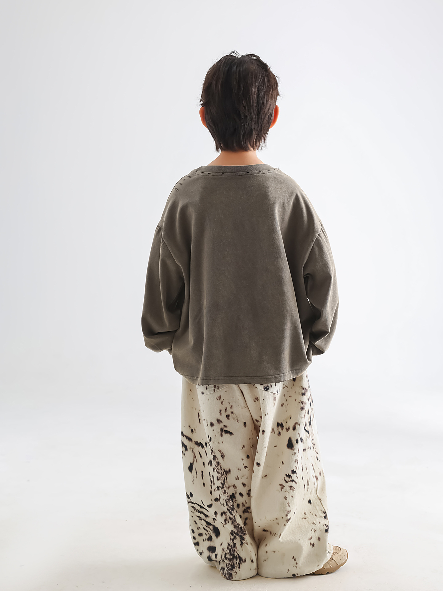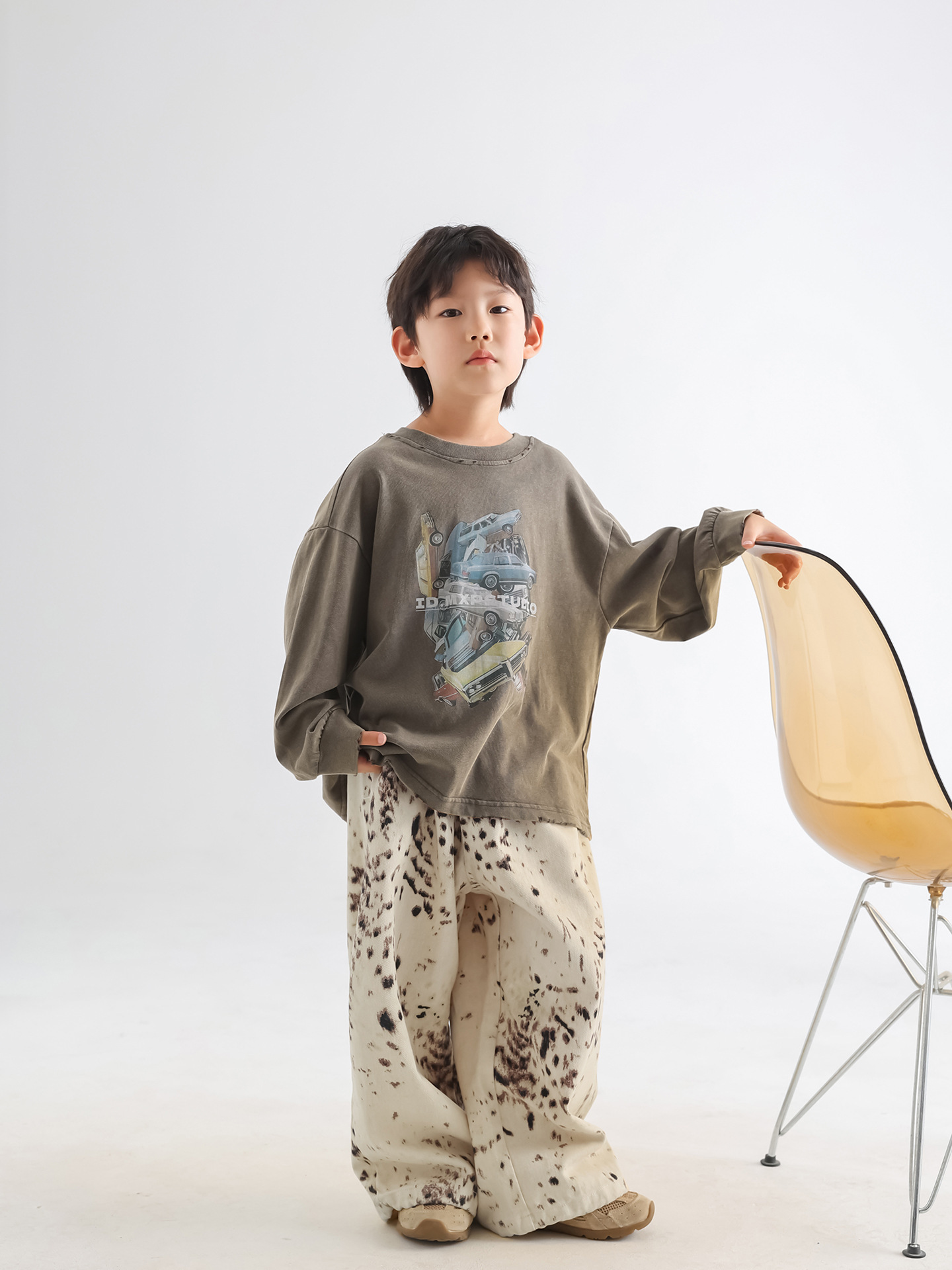 소년 봄 청바지 2025 새로운 어린이 한국 레오파드 무늬 캐주얼 바지 느슨한 넓은 다리 봄 트렌디 바지스토어 가기