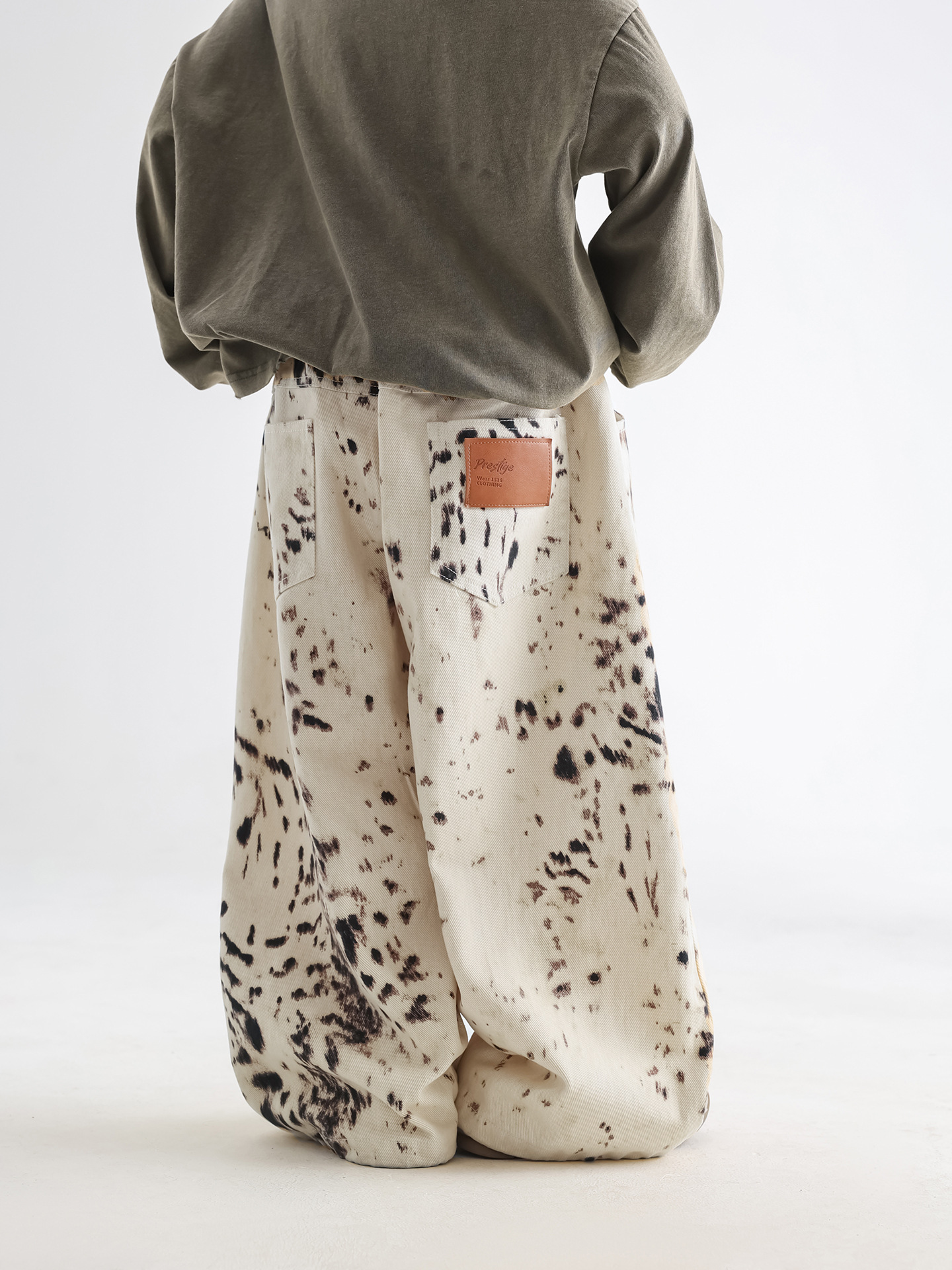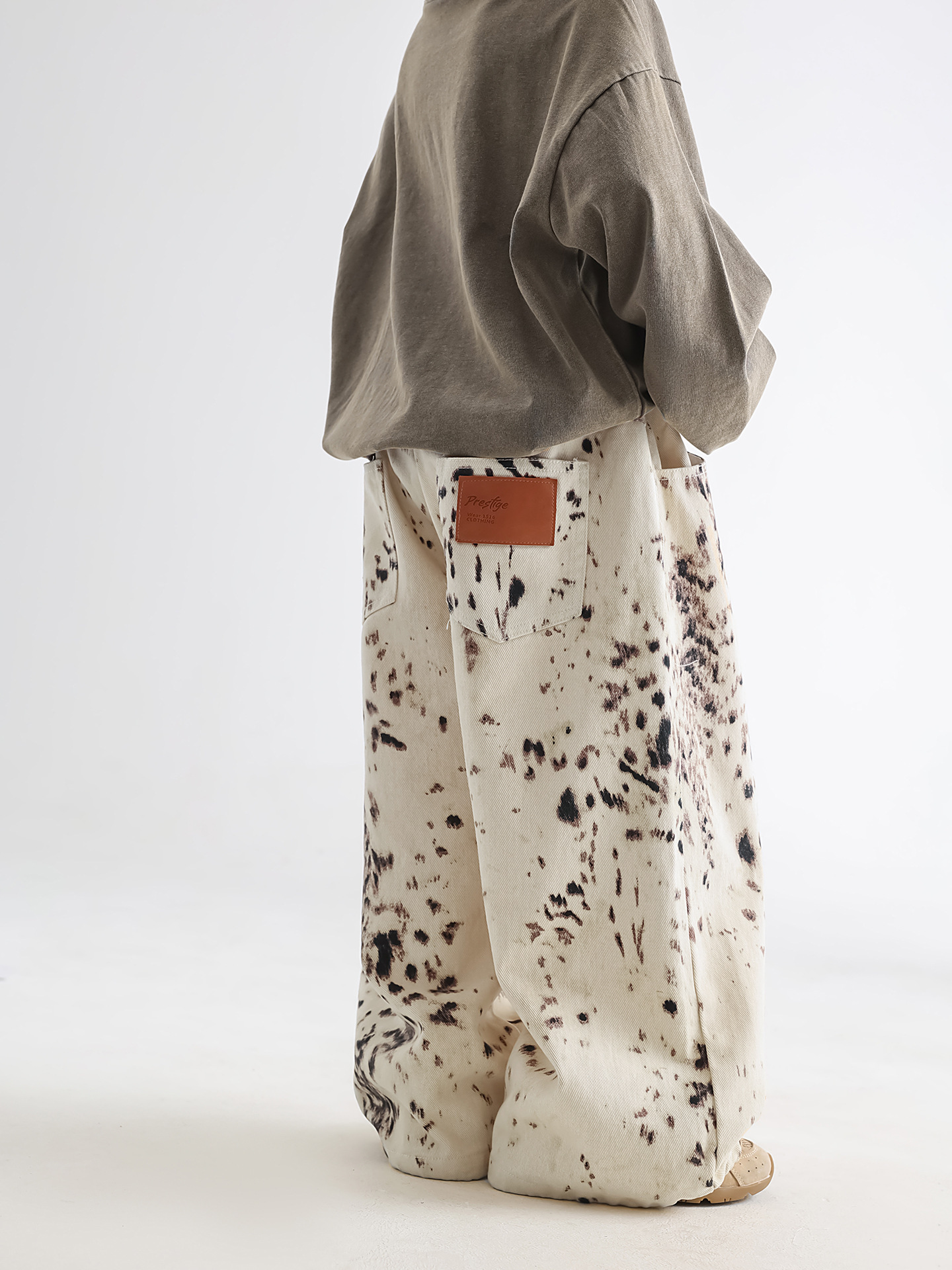 소년 봄 청바지 2025 새로운 어린이 한국 레오파드 무늬 캐주얼 바지 느슨한 넓은 다리 봄 트렌디 바지