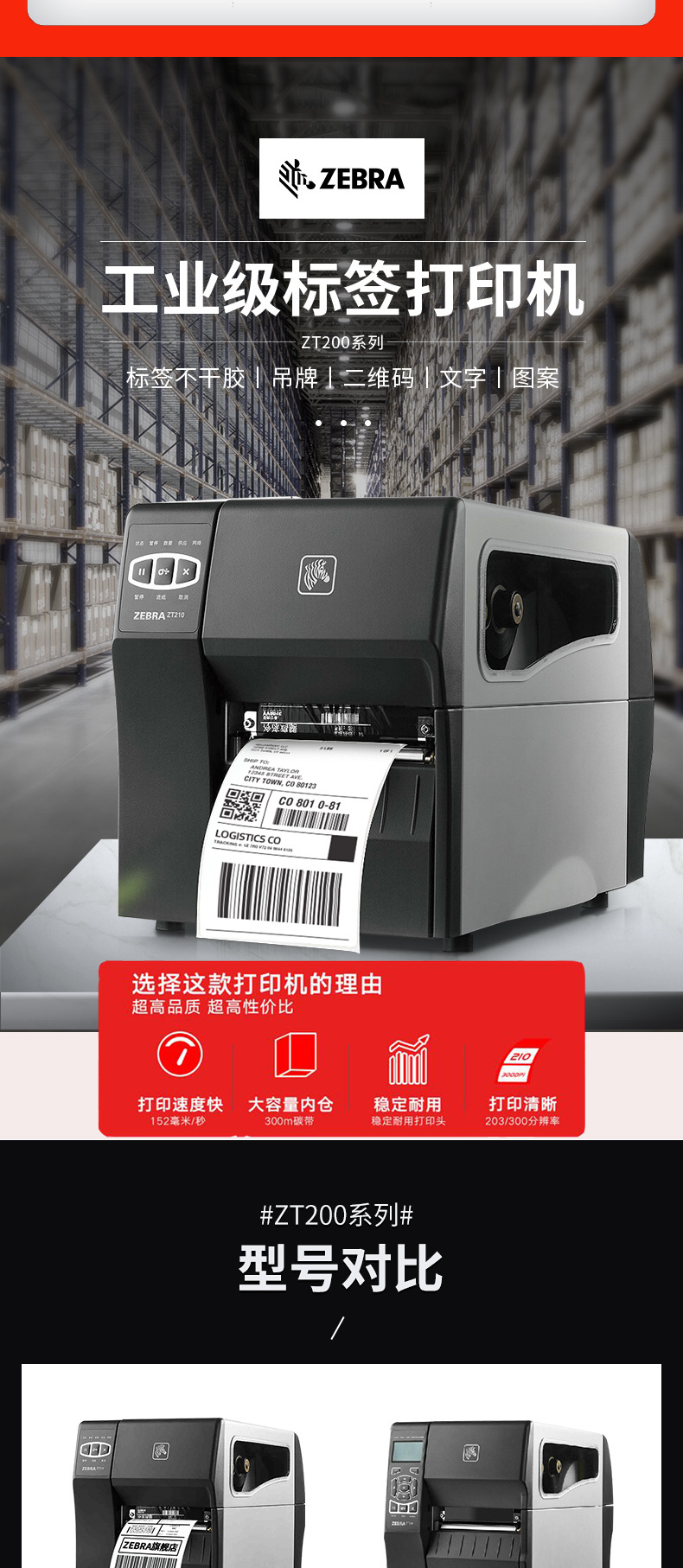 zebra斑马标签打印机ZT210/ZT230/ZT211/ZT231工业级不干胶打印机