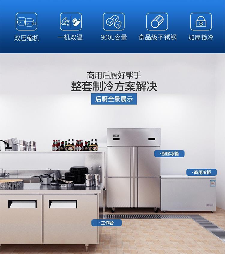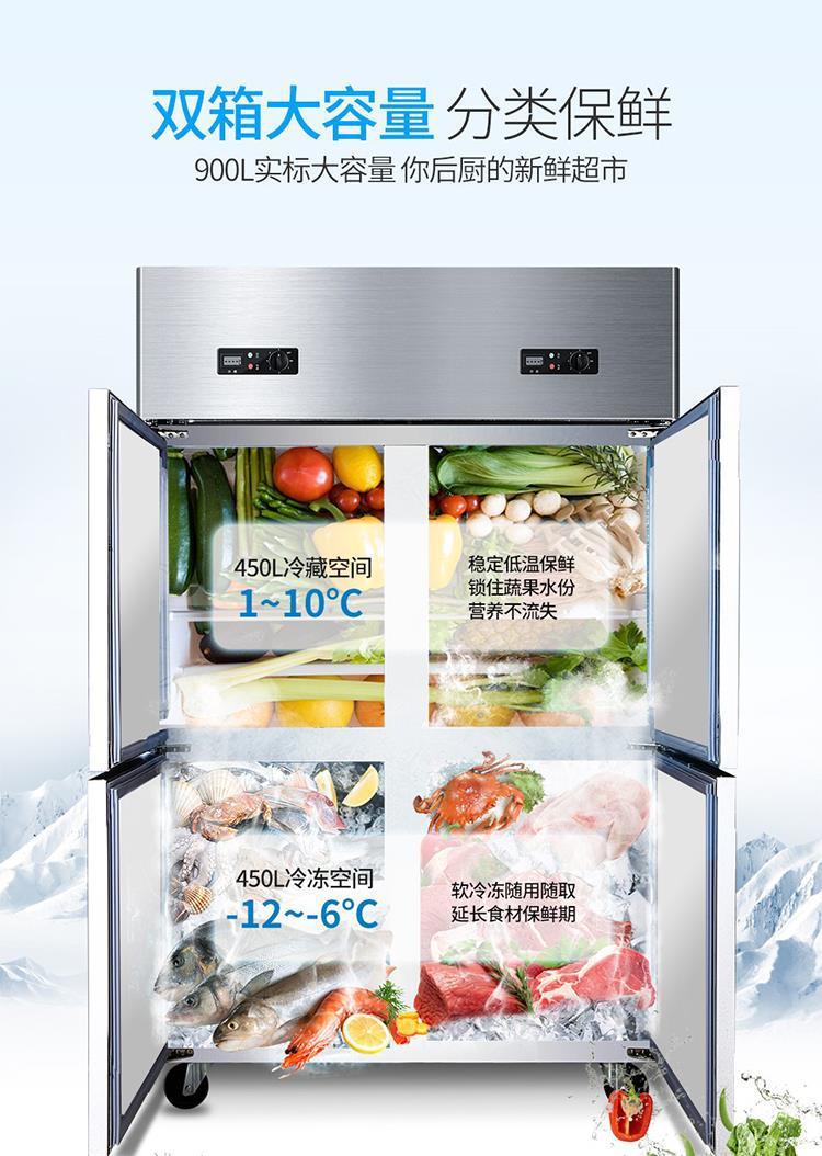 4도어 냉장고 및 냉동고 상업용 주방 수직 냉동고 냉장 및 냉동 이중 온도 대용량 신선 보관 캐비닛 4도어