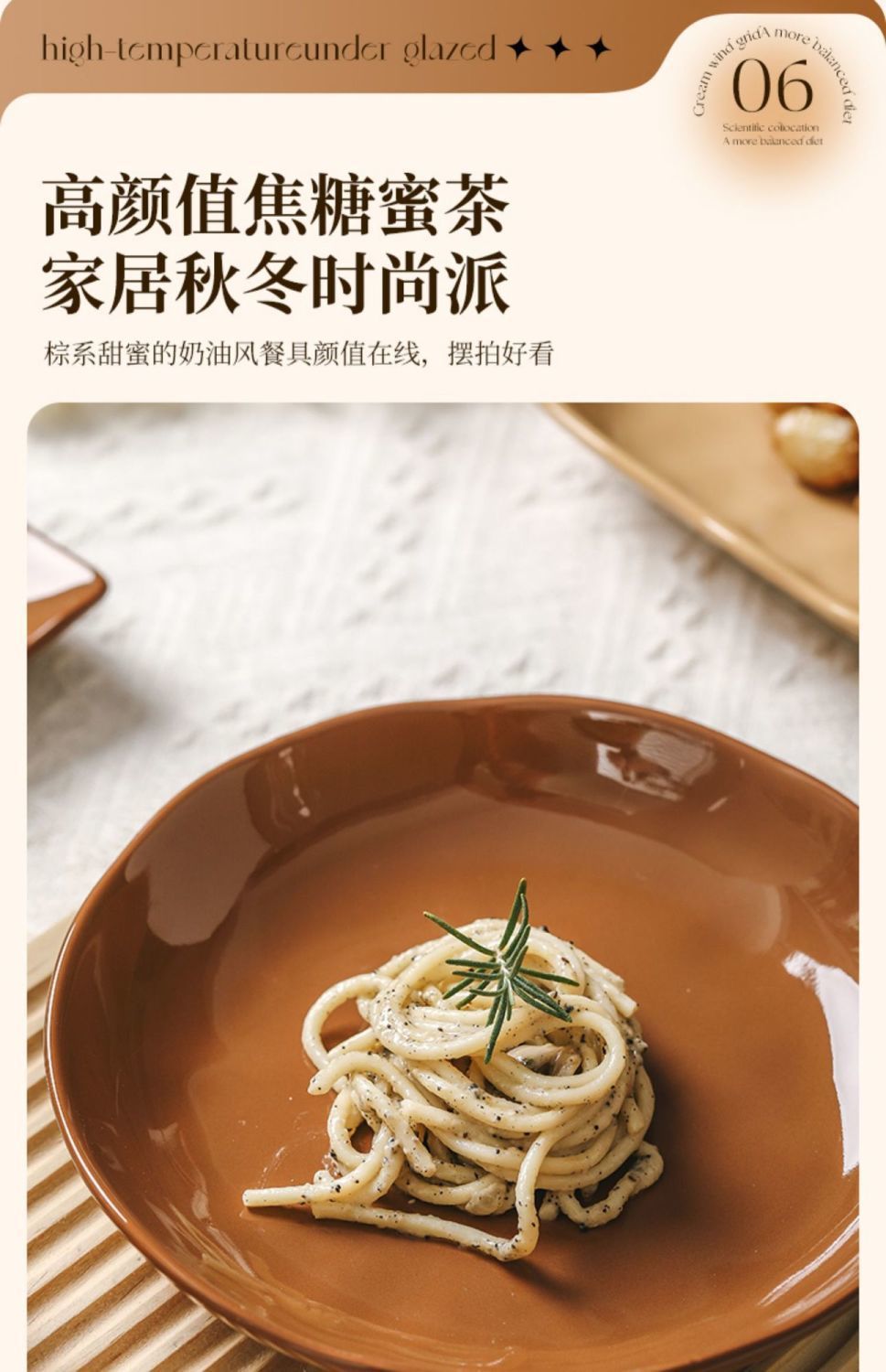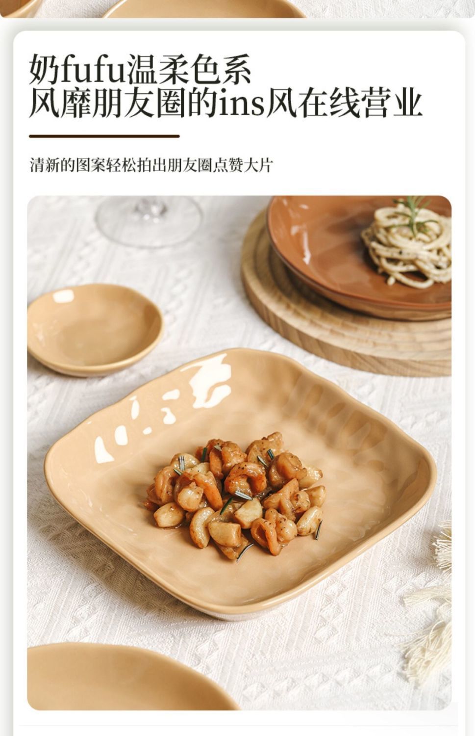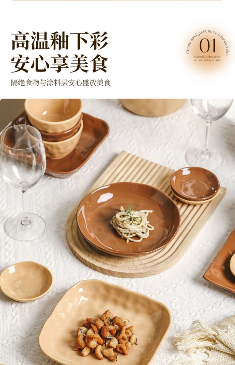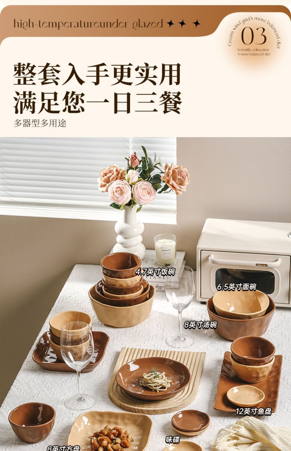 밀크티 컬러 식기 세트, 앤티크 재사용 접시, 집들이 선물, 접시, 스푼 및 젓가락 세트스토어 가기