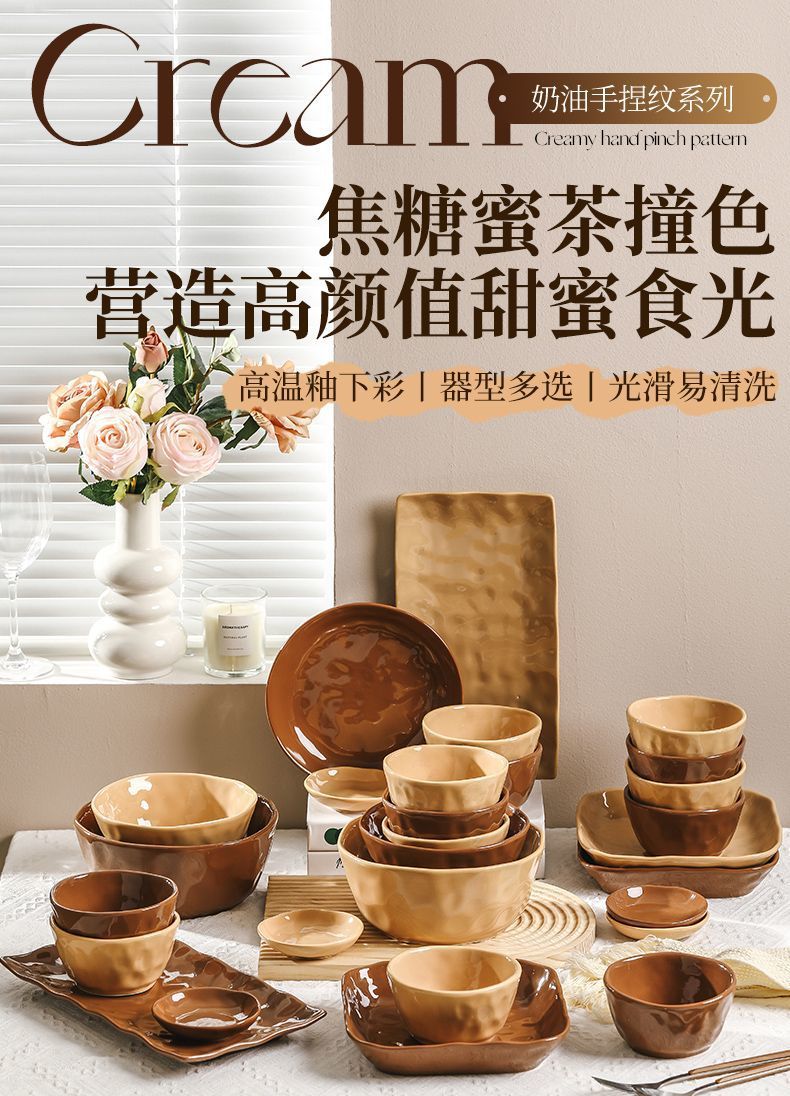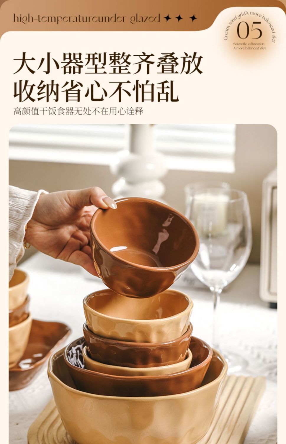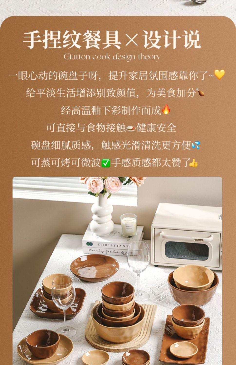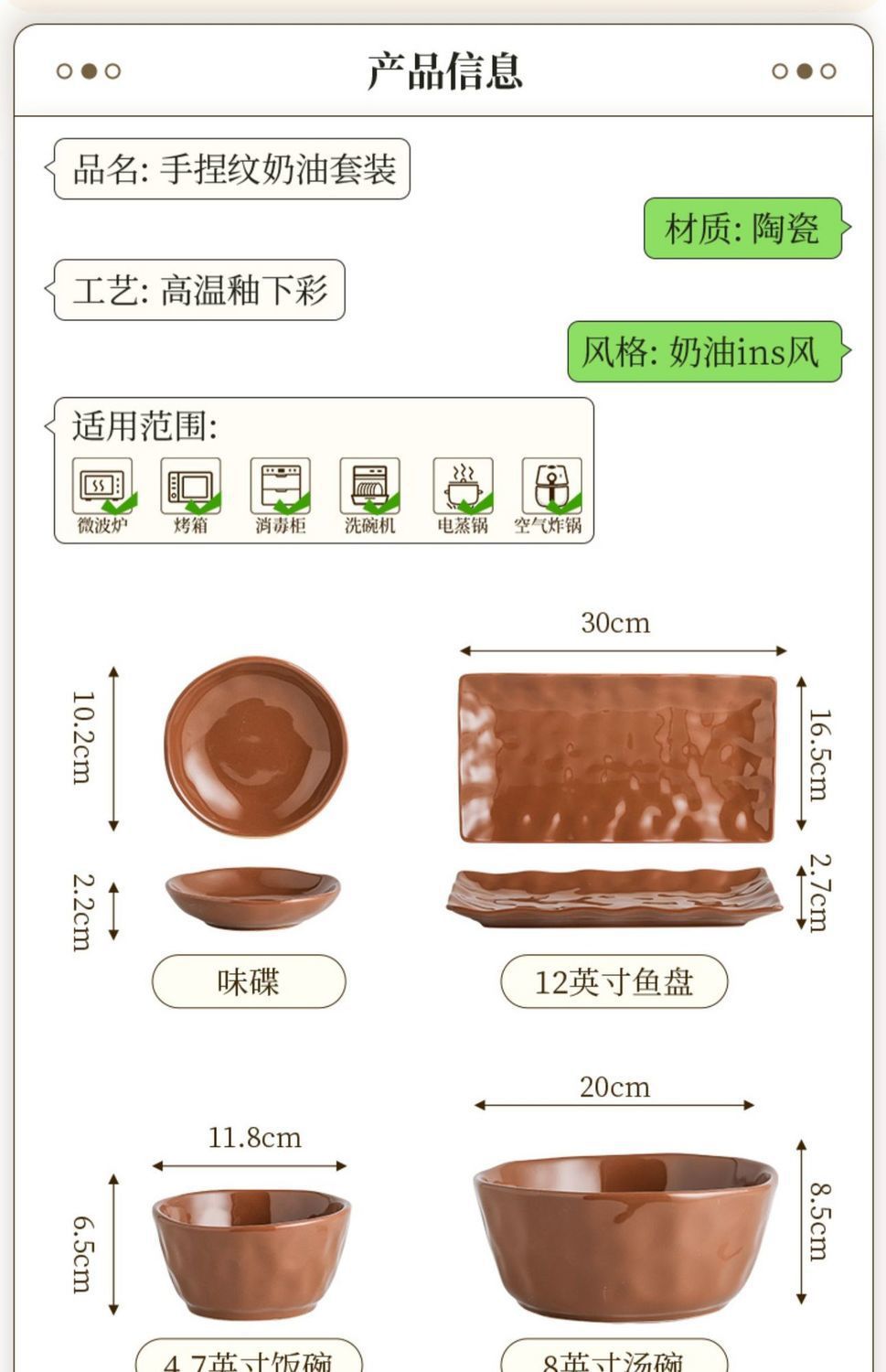 밀크티 컬러 식기 세트, 앤티크 재사용 접시, 집들이 선물, 접시, 스푼 및 젓가락 세트스토어 가기