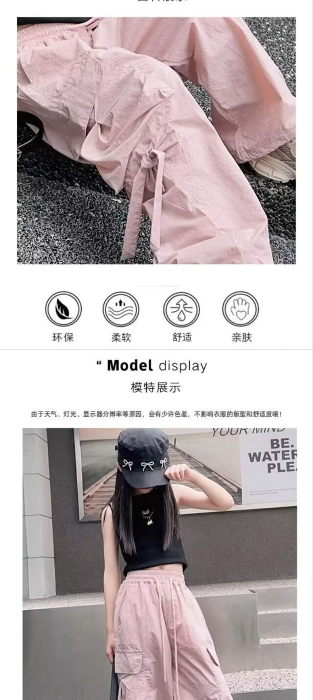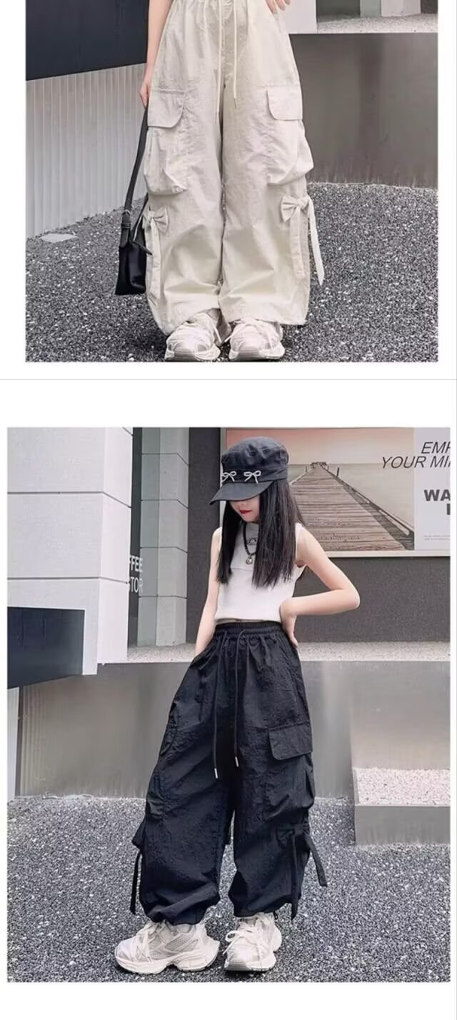 여아 여름 얇은 바지, 중대형 아동 작업복, 캐주얼하고 다재다능한 아동 여름 루즈한 바지, 봄, 가을 스포츠 바지스토어 가기