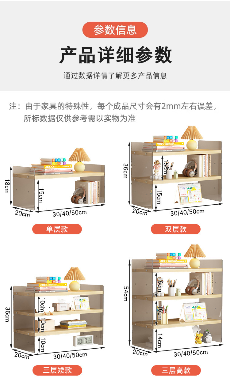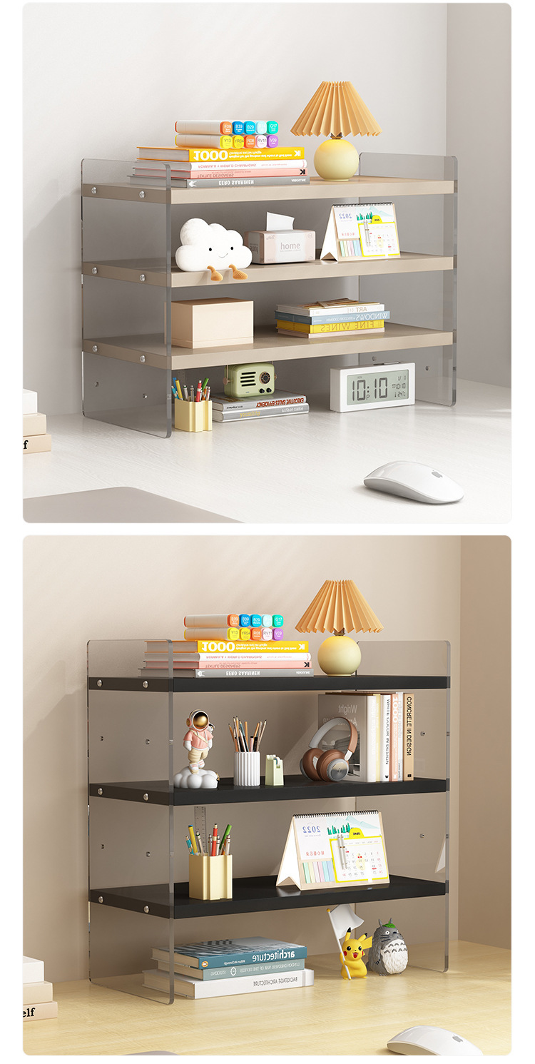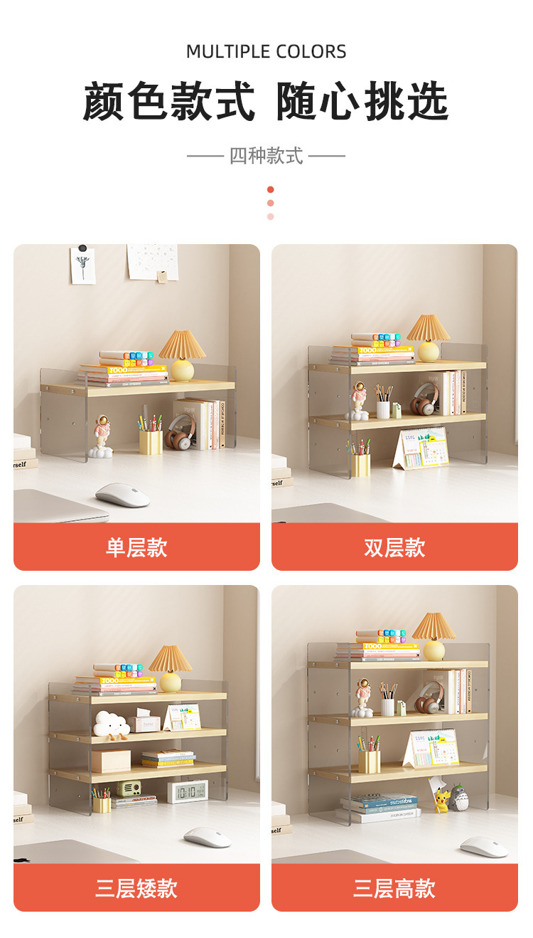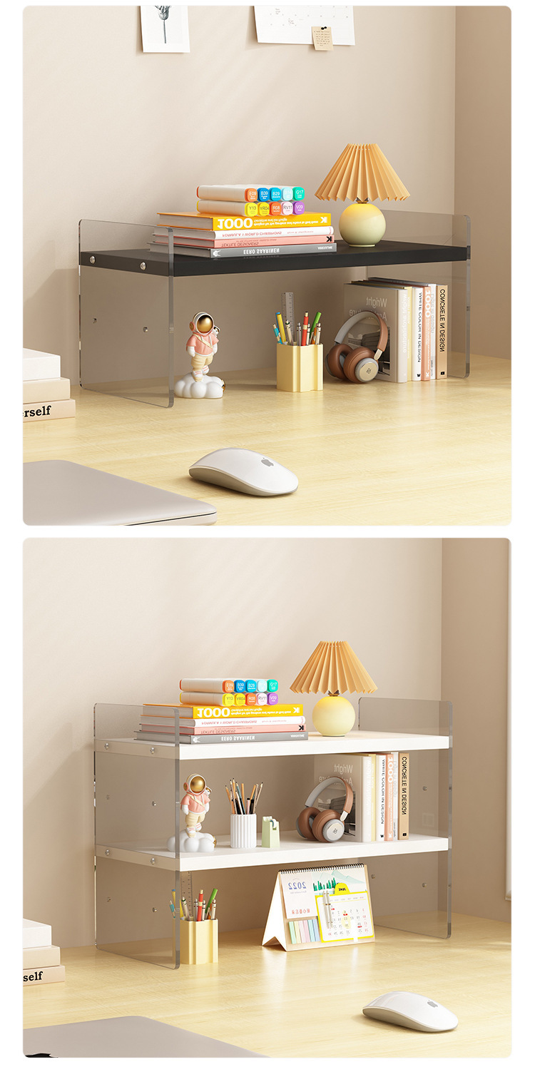 데스크탑 아크릴 스토리지 랙 데스크 메이크업 랙 책상 학생 기숙사 사무실 다층 조절 가능한 스토리지 및 정리