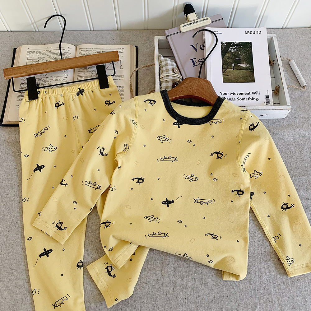 아동복 2025 봄 신작 한국 아동복 소년 귀여운 잠옷 세트 순면 보온 속옷 유행