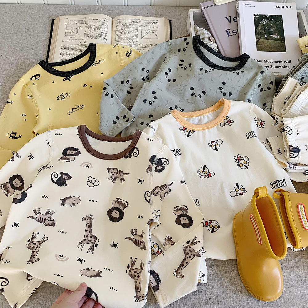 아동복 2025 봄 신작 한국 아동복 소년 귀여운 잠옷 세트 순면 보온 속옷 유행스토어 가기