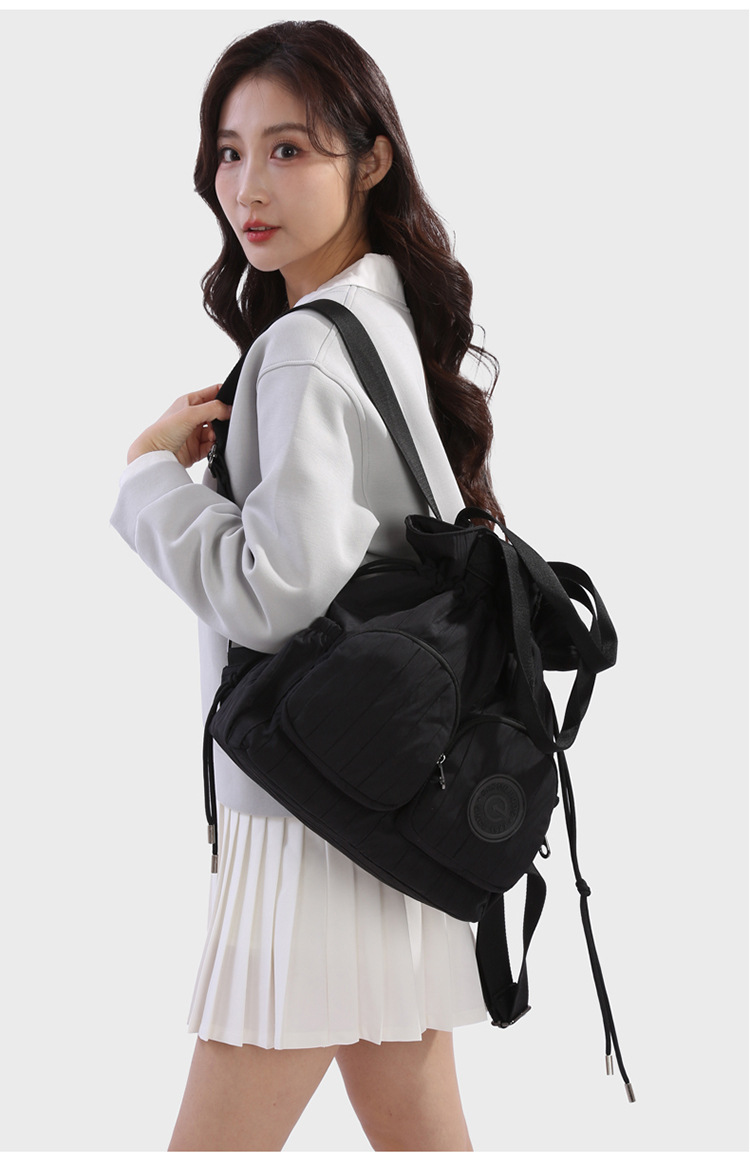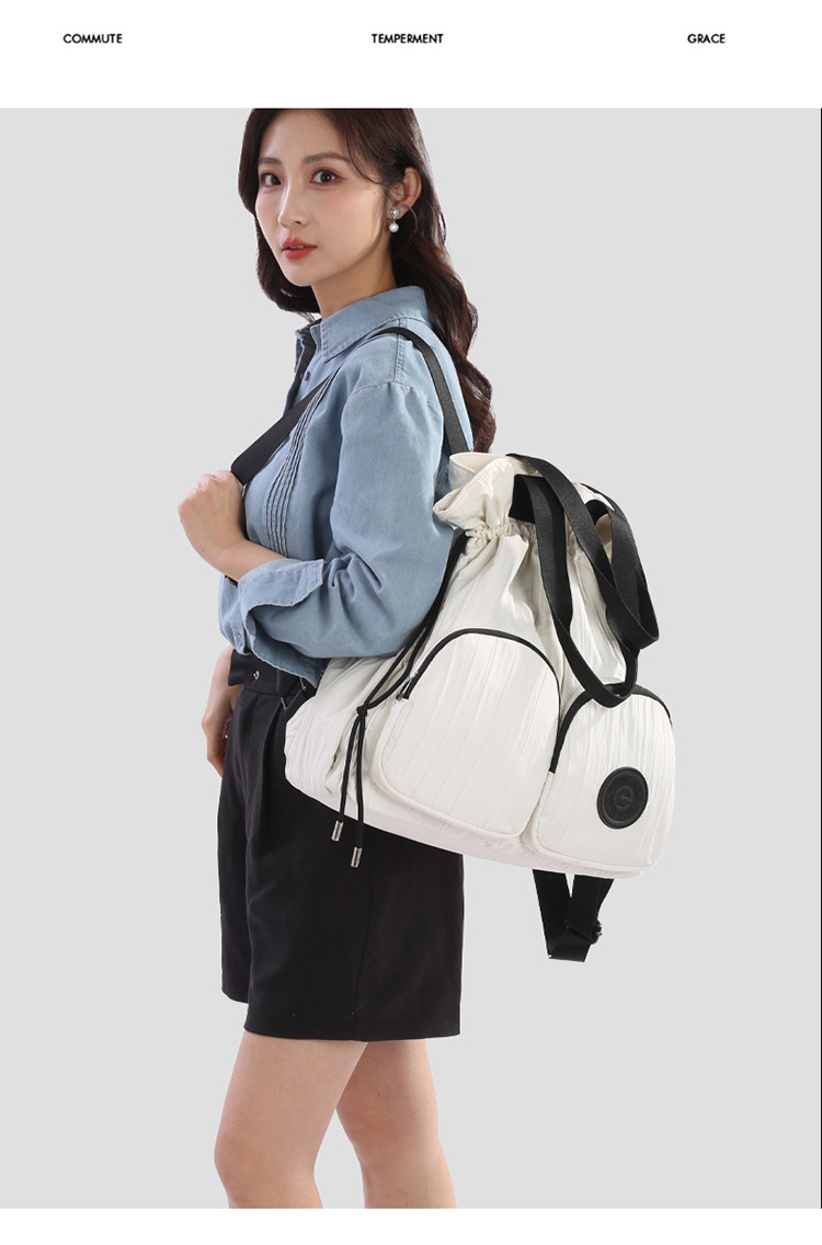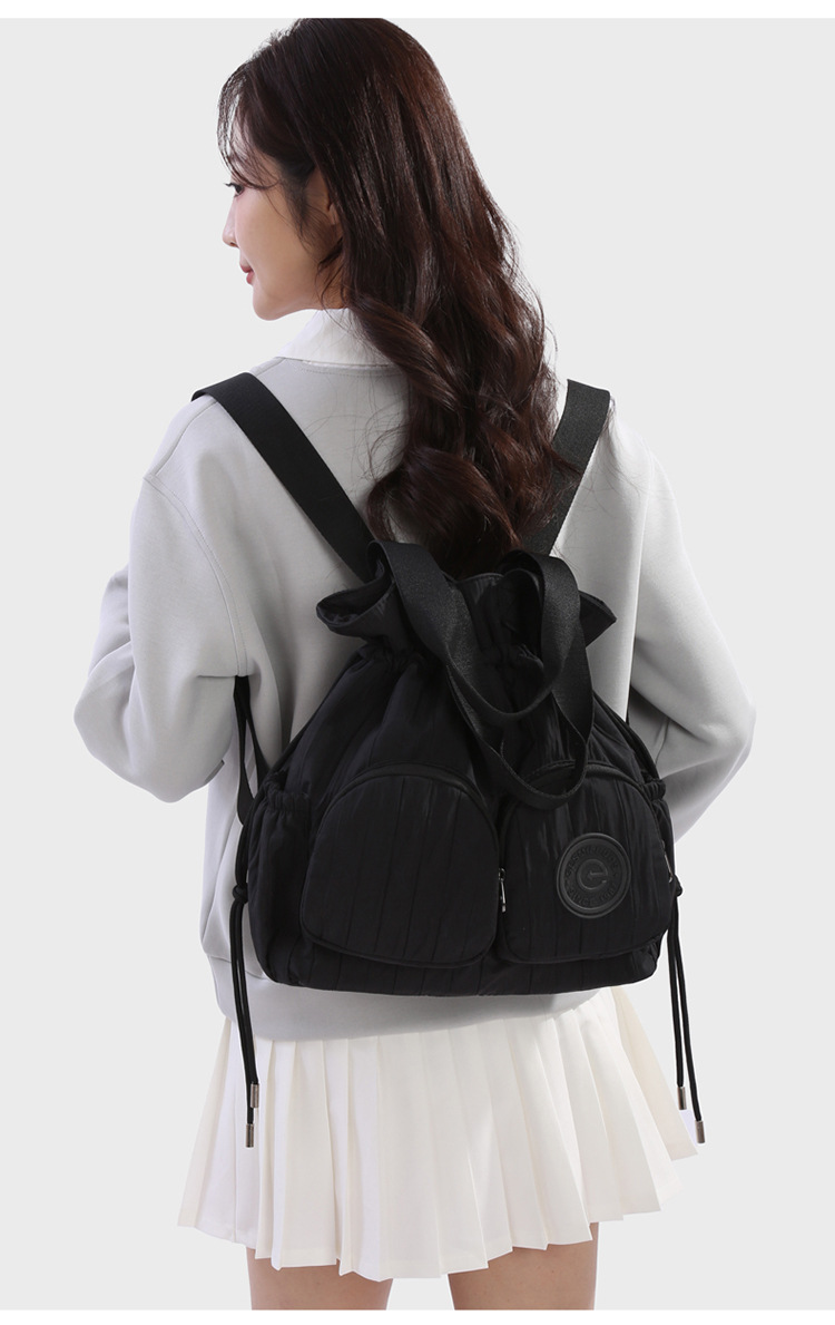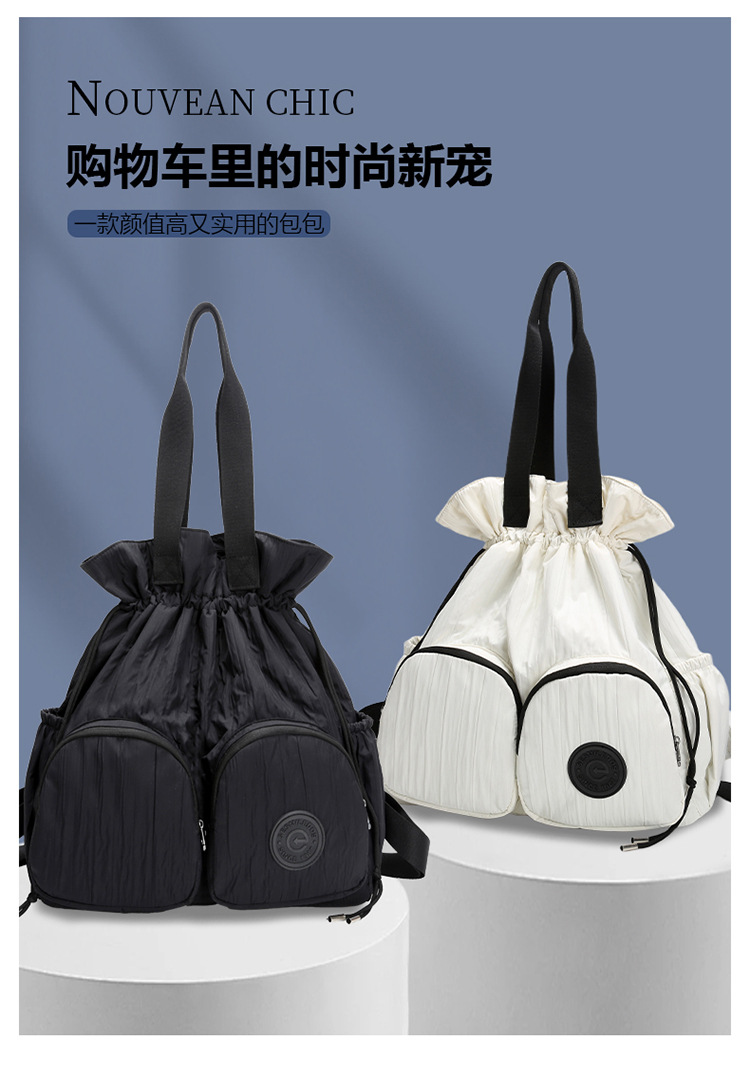 여성용 가방 2024 여름 새로운 국경 간 트렌드 남성용 및 여성용 드로스트링 백 나일론 천 숄더백 캐주얼 방수 배낭