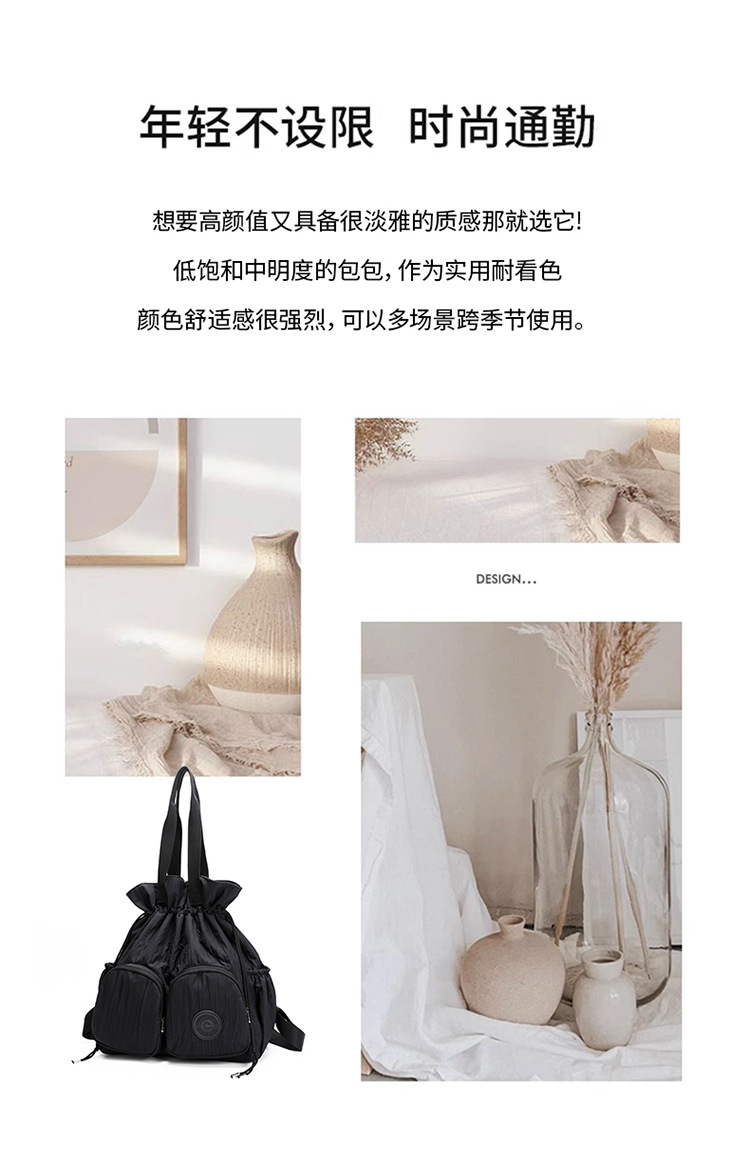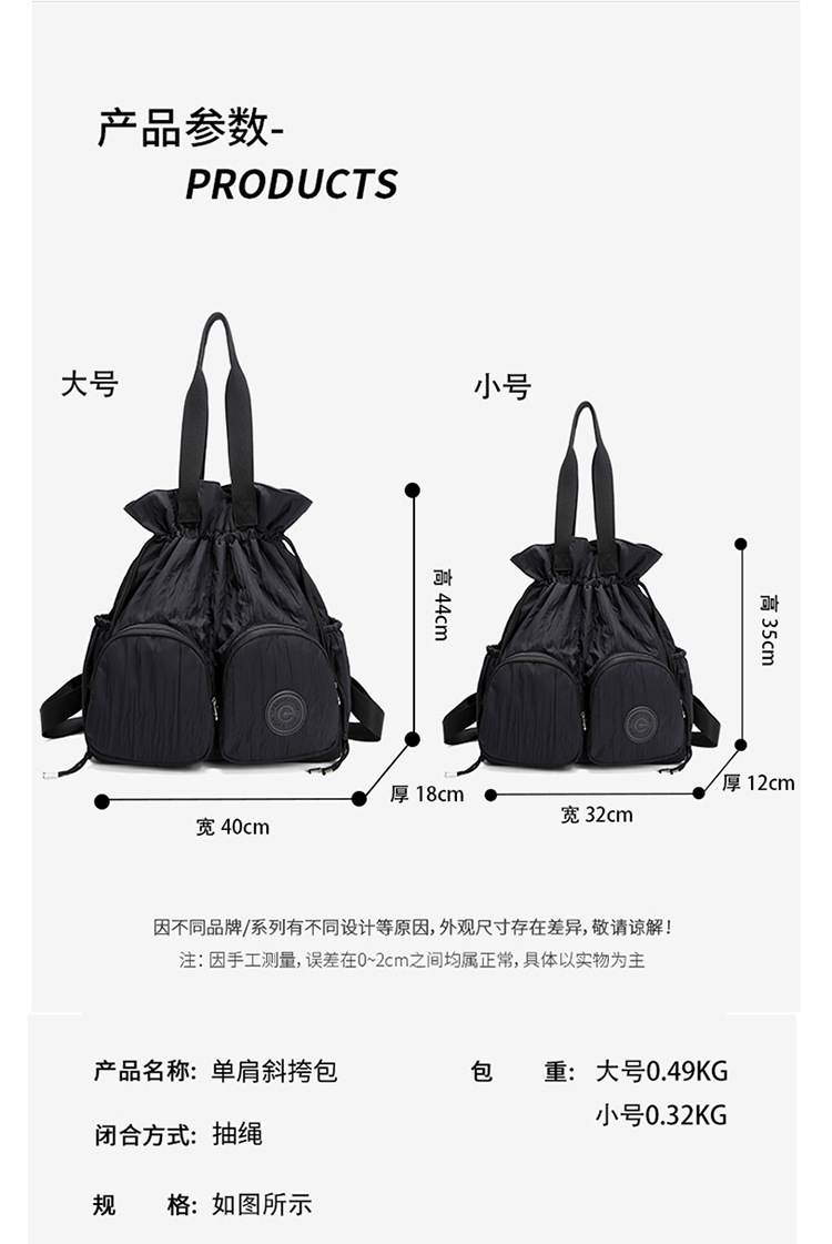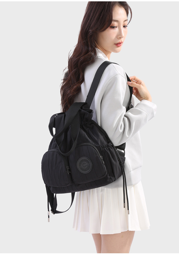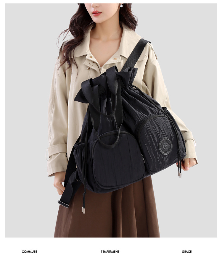 여성용 가방 2024 여름 새로운 국경 간 트렌드 남성용 및 여성용 드로스트링 백 나일론 천 숄더백 캐주얼 방수 배낭