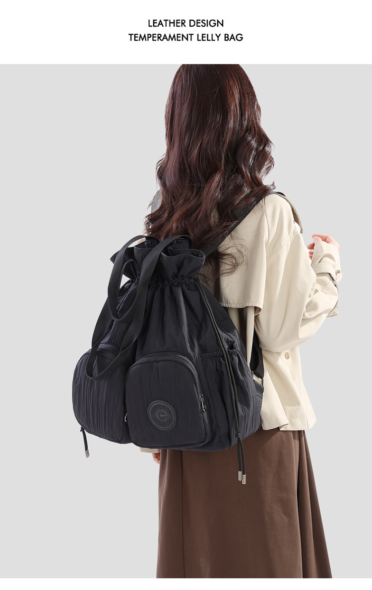 여성용 가방 2024 여름 새로운 국경 간 트렌드 남성용 및 여성용 드로스트링 백 나일론 천 숄더백 캐주얼 방수 배낭스토어 가기