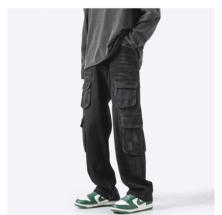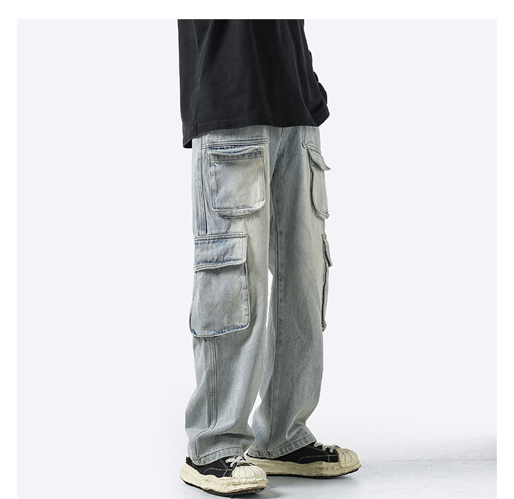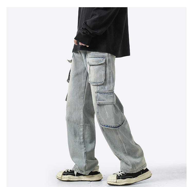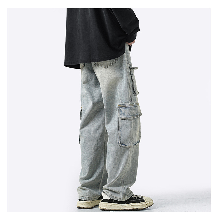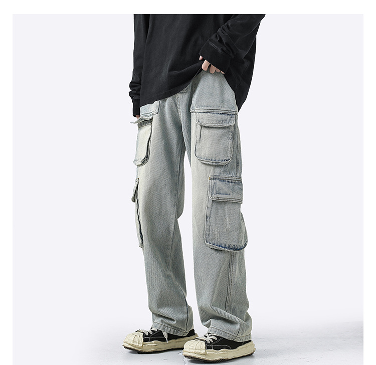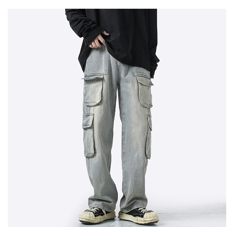 아메리칸 레트로 워싱 청바지 남성 여름 얇은 멀티 포켓 작업복 와이드 팬츠 디자인 루즈 롱 팬츠스토어 가기
