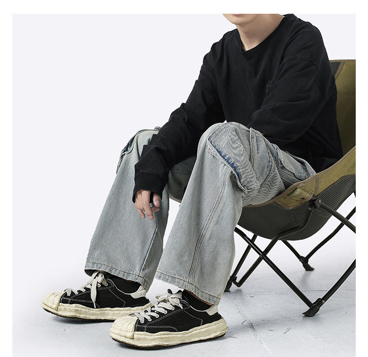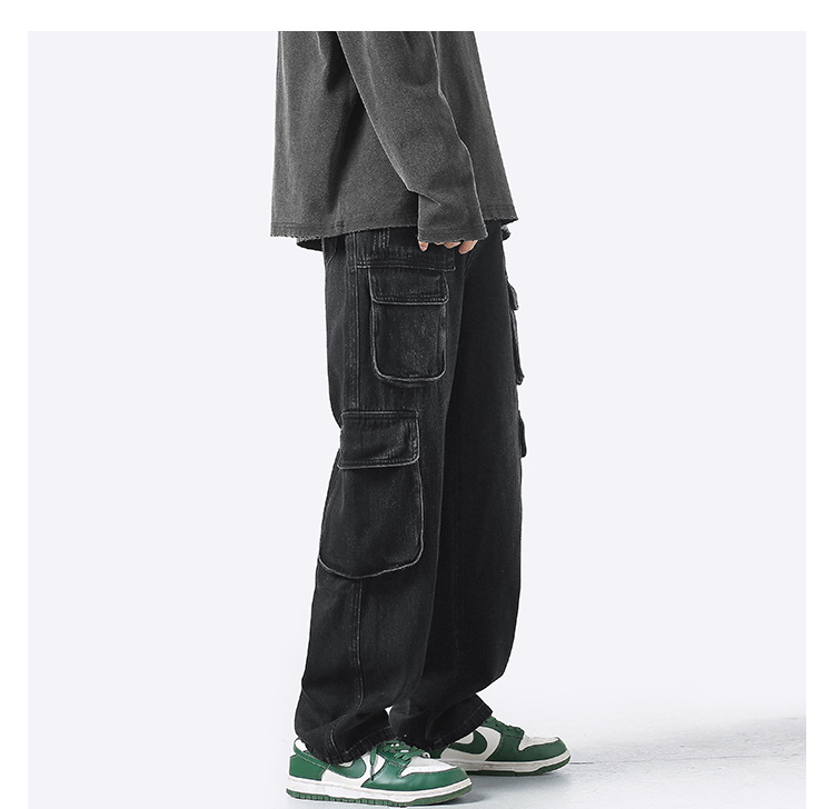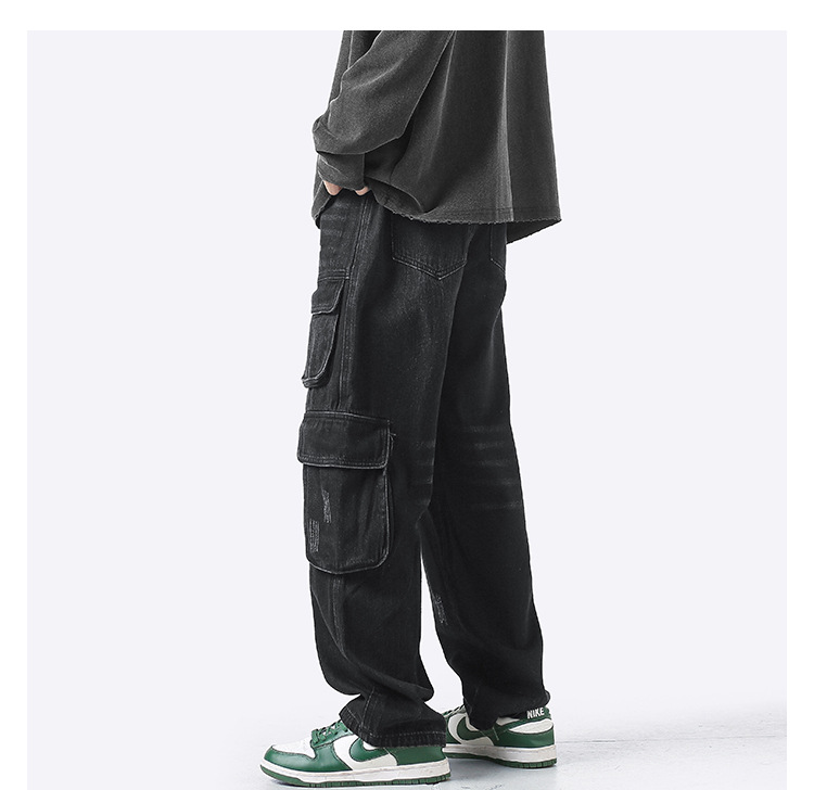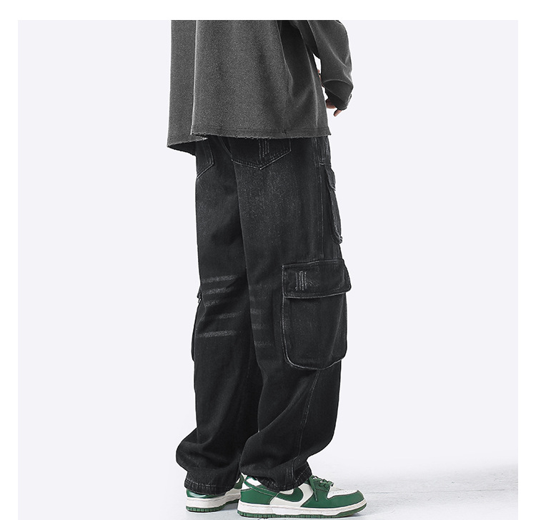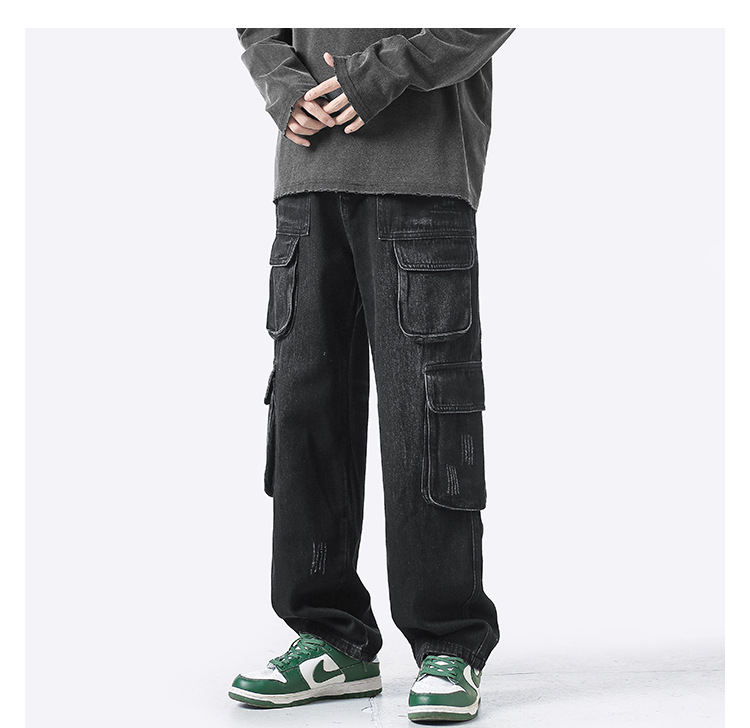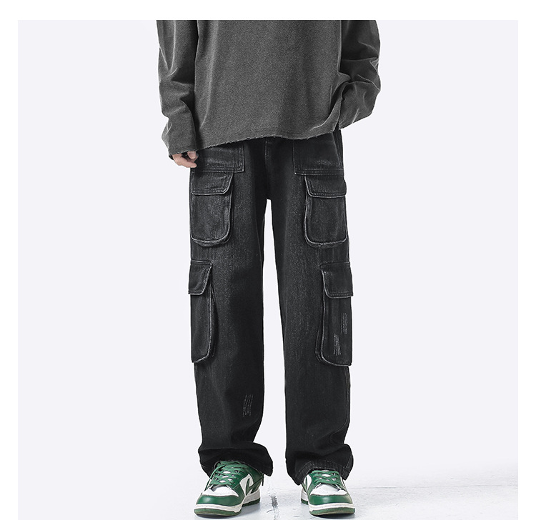 아메리칸 레트로 워싱 청바지 남성 여름 얇은 멀티 포켓 작업복 와이드 팬츠 디자인 루즈 롱 팬츠스토어 가기