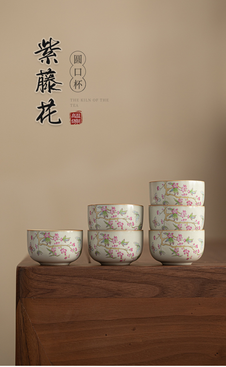 Chenxiang Ru Kiln Wisteria Flower 마스터 컵 싱글 컵 개인용 차 컵 개방형 세라믹 쿵푸 티 컵스토어 가기