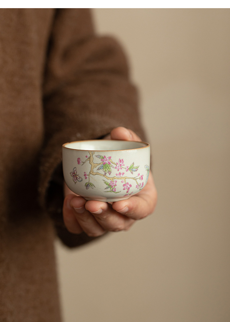Chenxiang Ru Kiln Wisteria Flower 마스터 컵 싱글 컵 개인용 차 컵 개방형 세라믹 쿵푸 티 컵