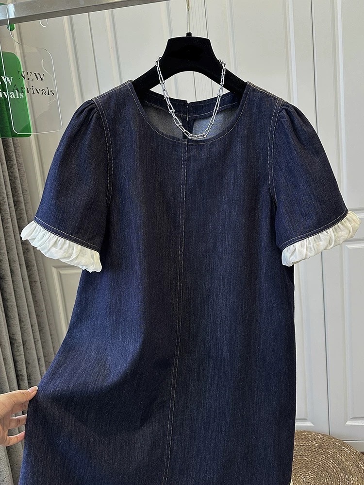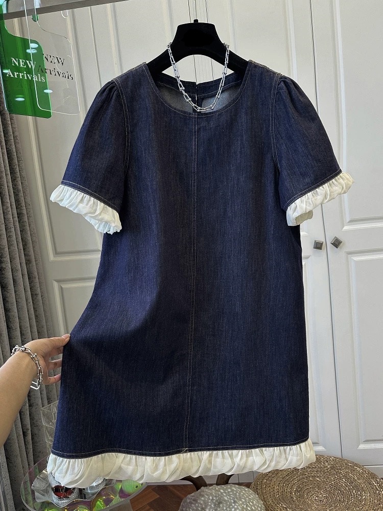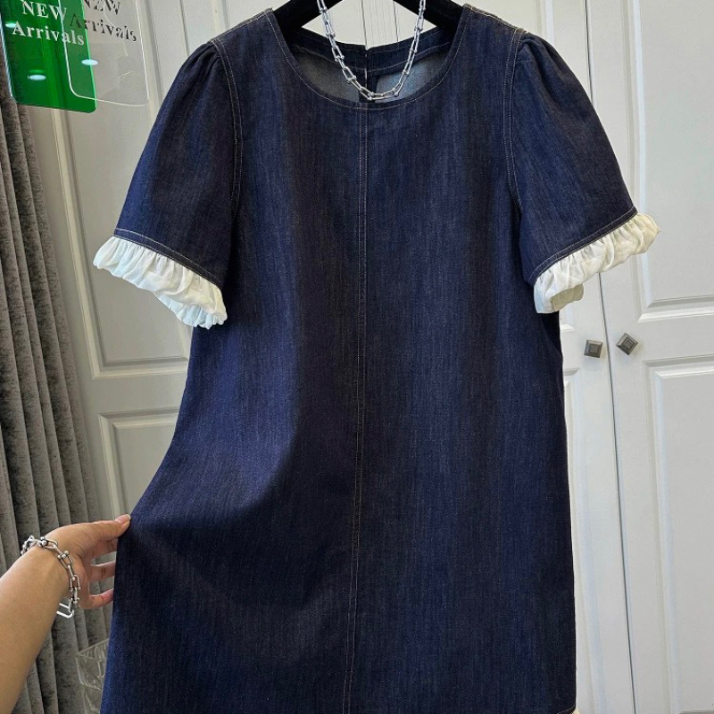한국 스타일 레트로 반팔 데님 원피스 여성 의류 2025 년 여름 새로운 틈새 디자인 짧은 치마