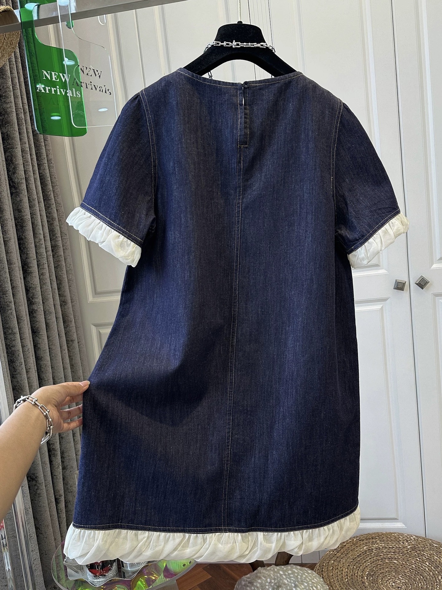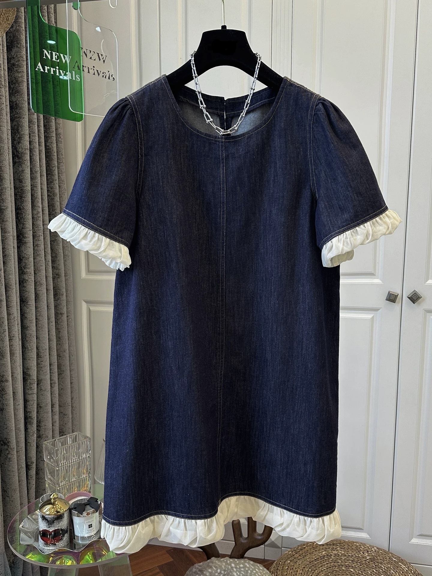 한국 스타일 레트로 반팔 데님 원피스 여성 의류 2025 년 여름 새로운 틈새 디자인 짧은 치마스토어 가기