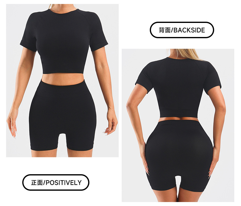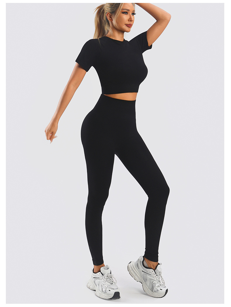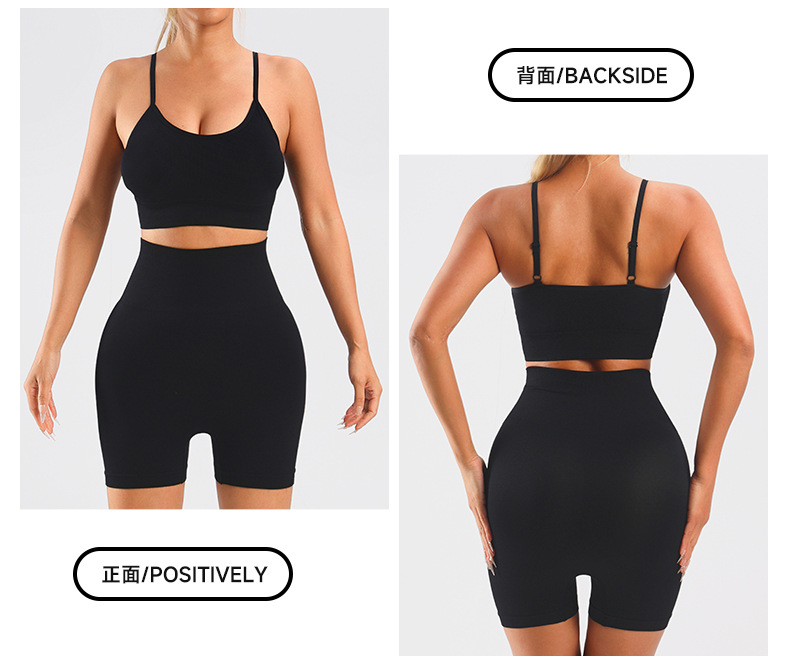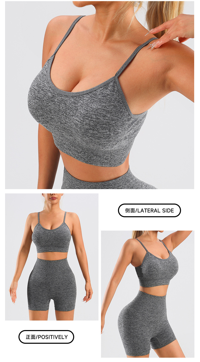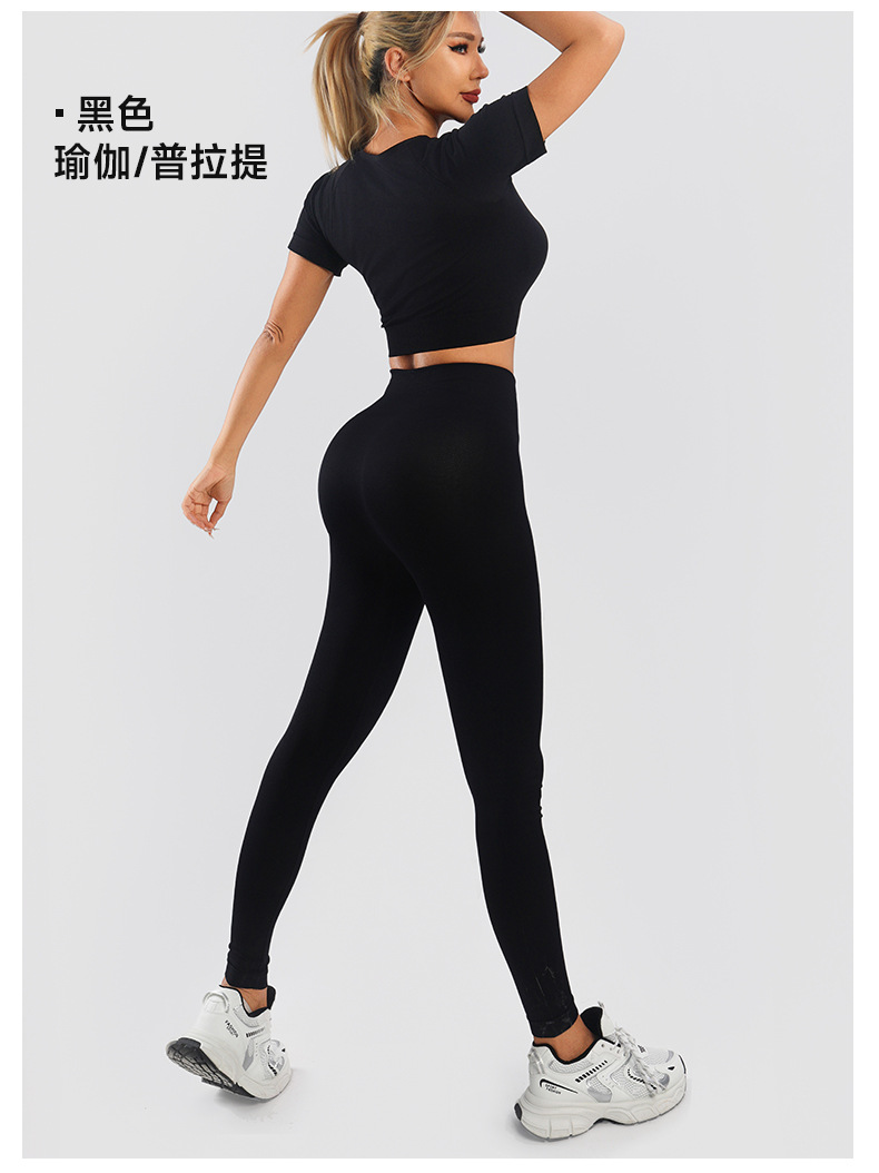 Yingjia 어색한 라인이 없는 솔리드 컬러 요가복 하이 웨이스트 속건성 엉덩이 리프팅 바지 반팔 작은 서스펜더 요가 조끼 BRA
