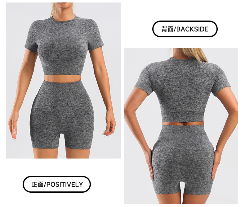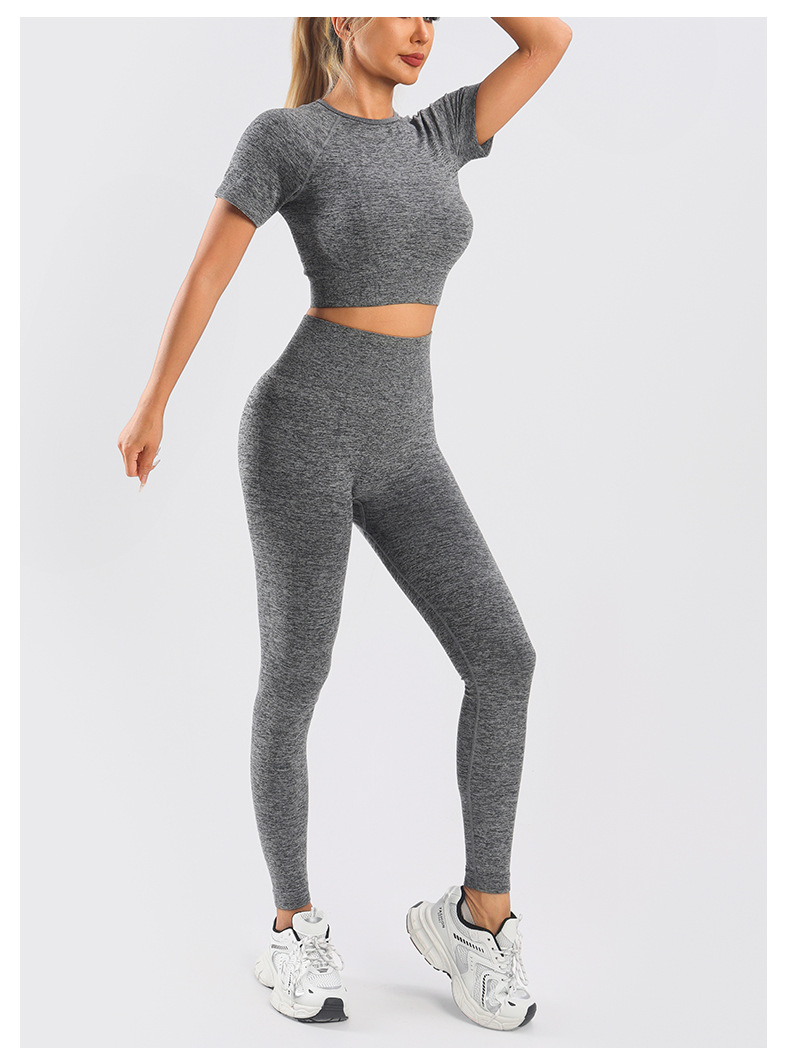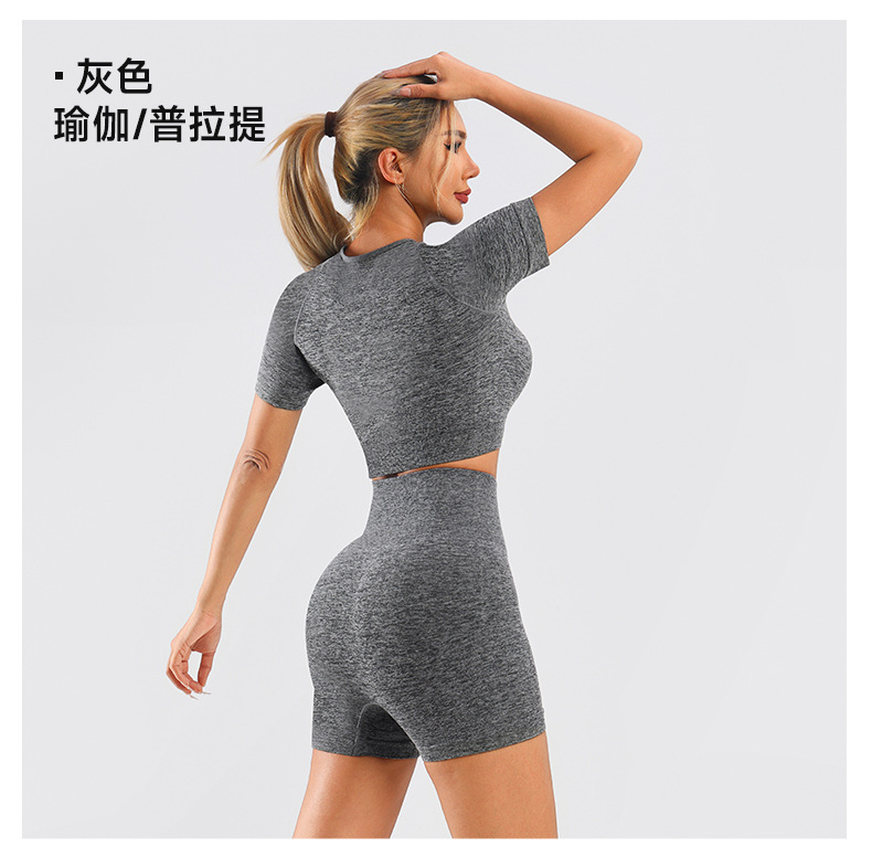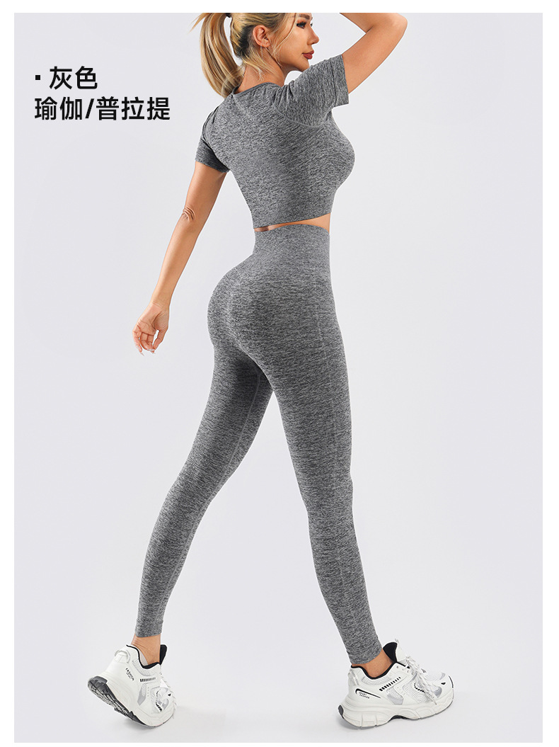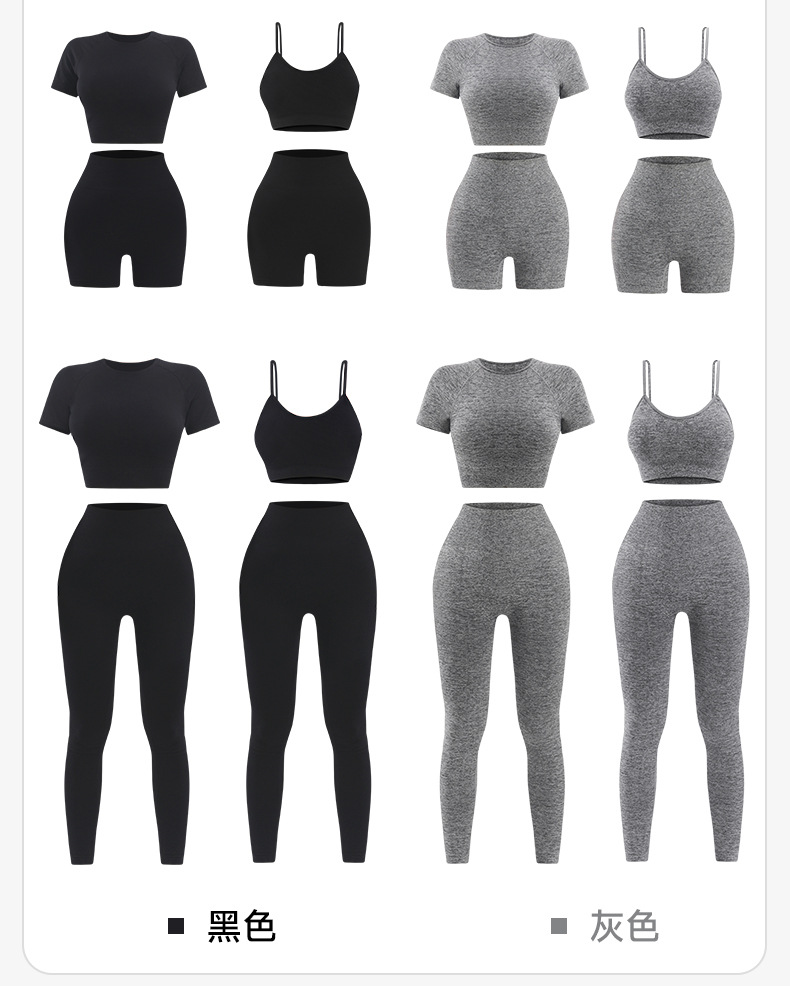 Yingjia 어색한 라인이 없는 솔리드 컬러 요가복 하이 웨이스트 속건성 엉덩이 리프팅 바지 반팔 작은 서스펜더 요가 조끼 BRA스토어 가기