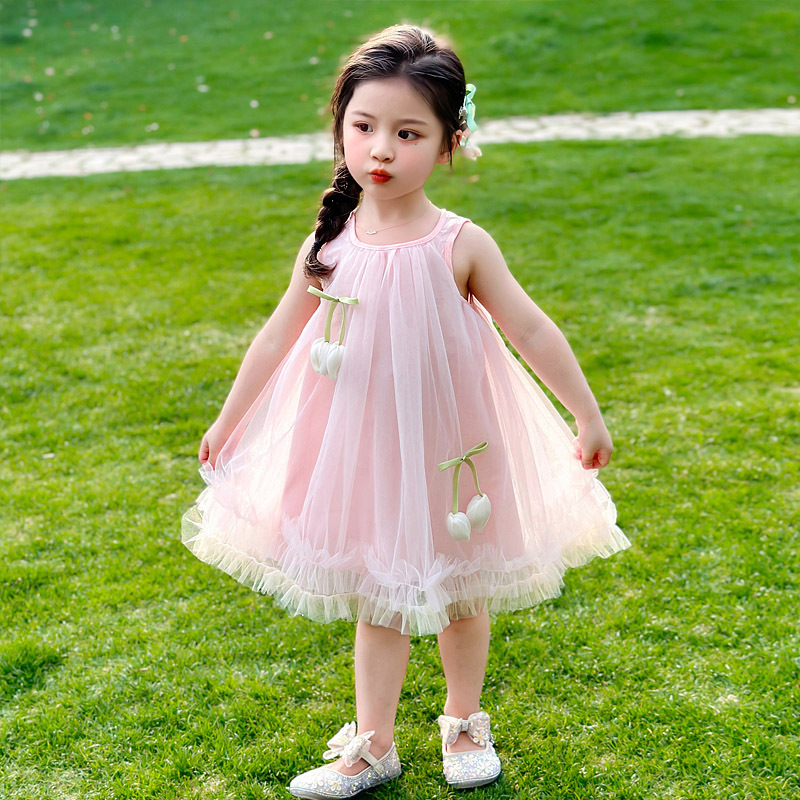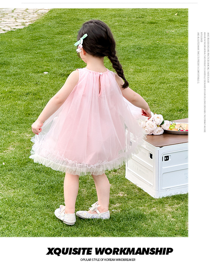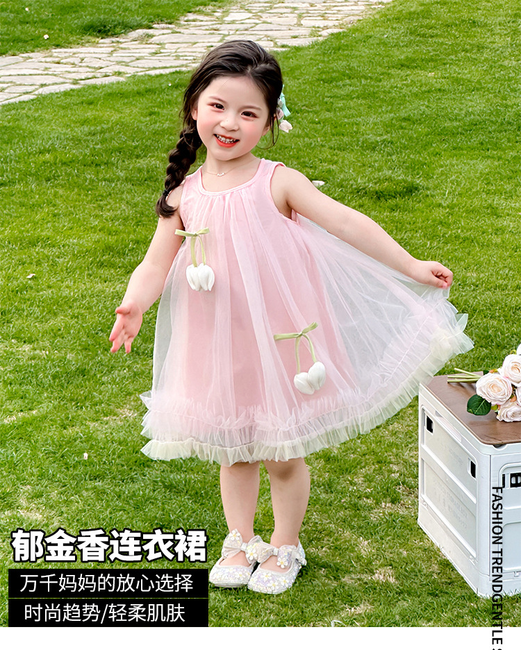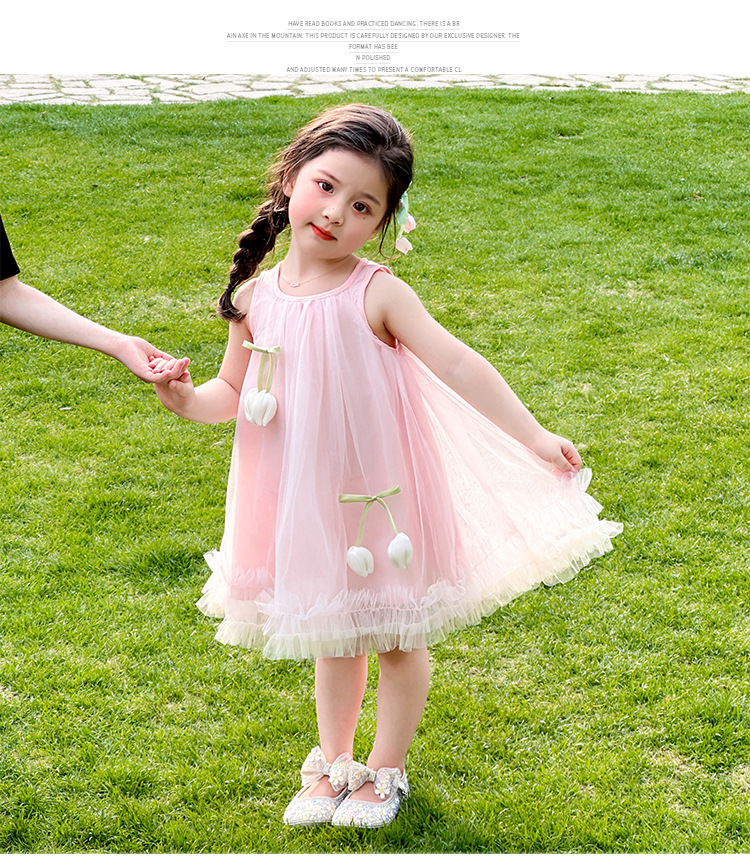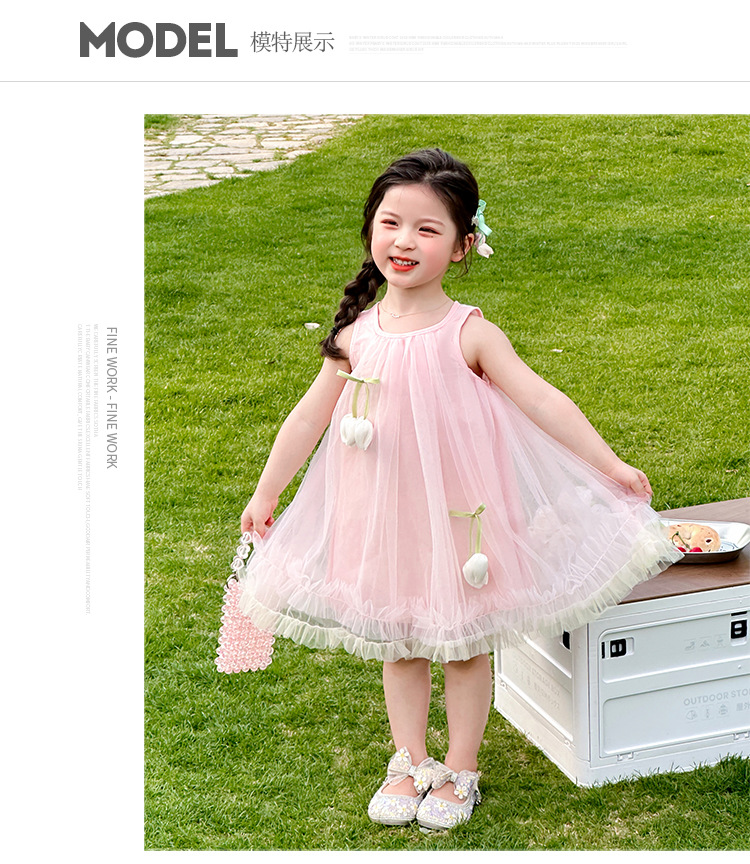 여자 튤립 메쉬 원피스 2025 여름 새로운 패션 소녀 세련된 공주 원피스 어린이 여름 원피스스토어 가기