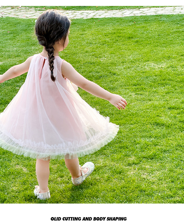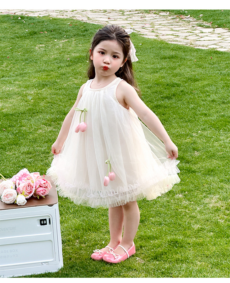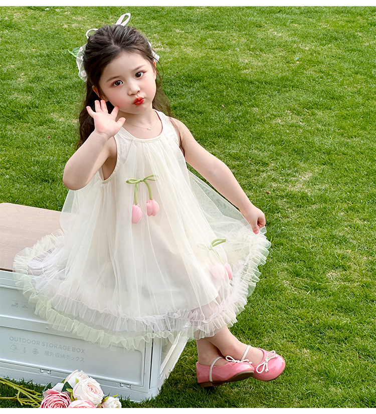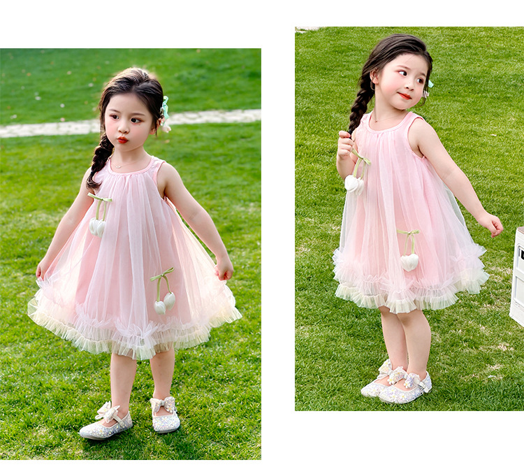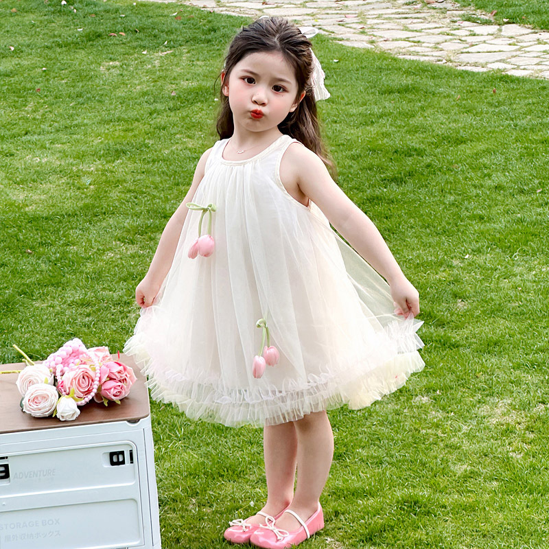 여자 튤립 메쉬 원피스 2025 여름 새로운 패션 소녀 세련된 공주 원피스 어린이 여름 원피스스토어 가기