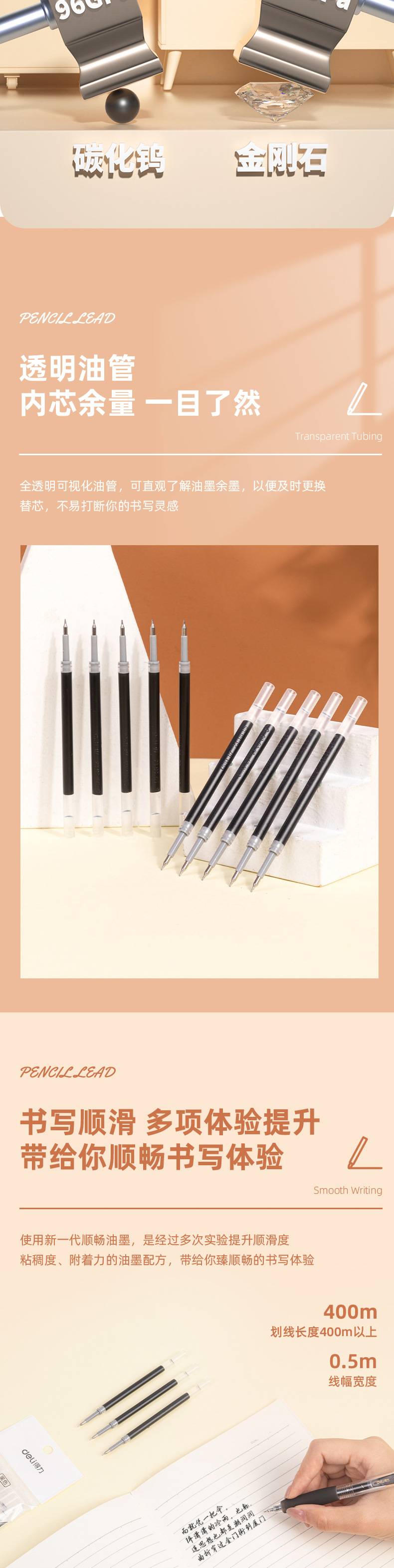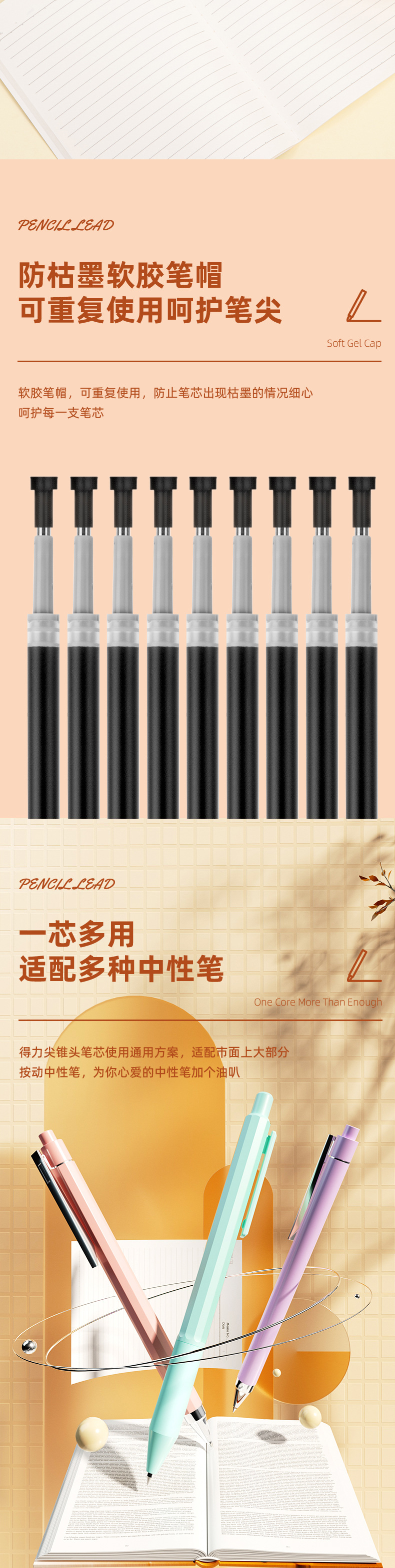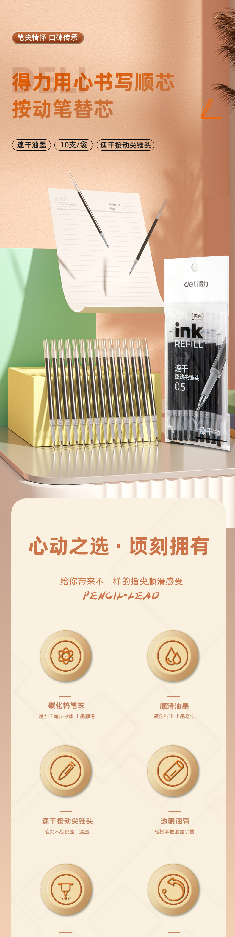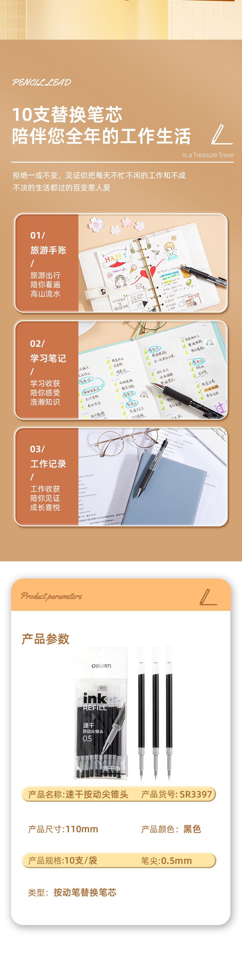 델리 SR3397 젤펜 리필 0.5mm 프레스 포인트 테이퍼 헤드 블랙 대용량 속건성 리필 10개