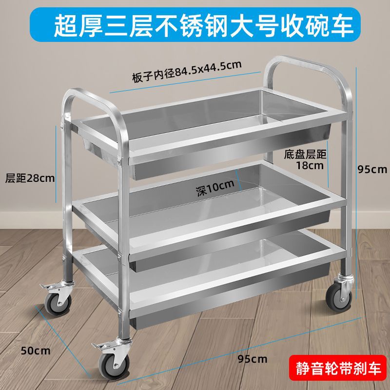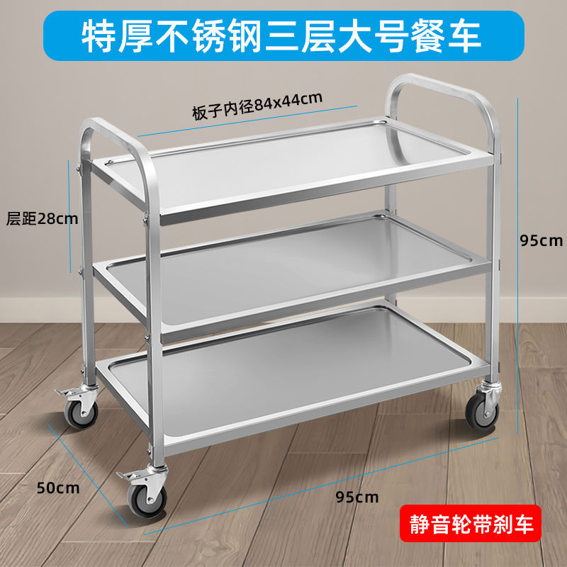 • 丨(특대 스테인레스 스틸) 팔꿈치 3층 대형 다이닝 카트