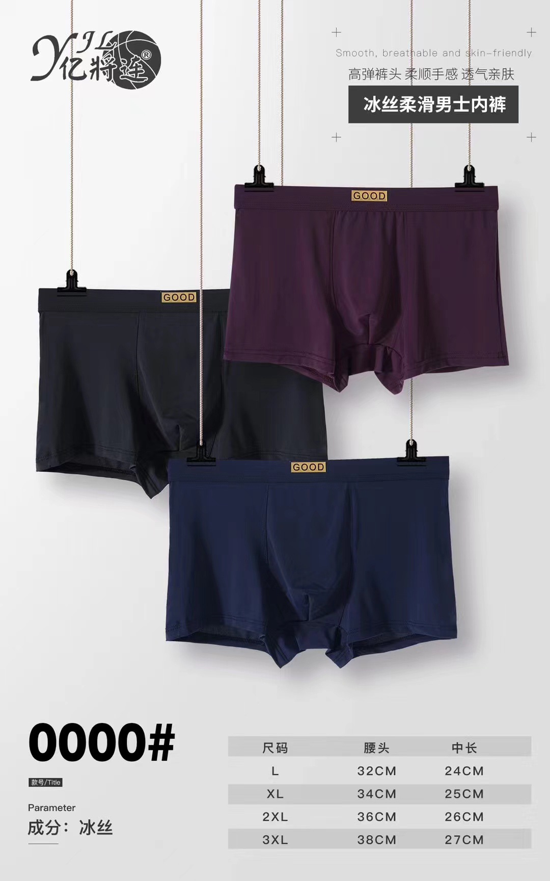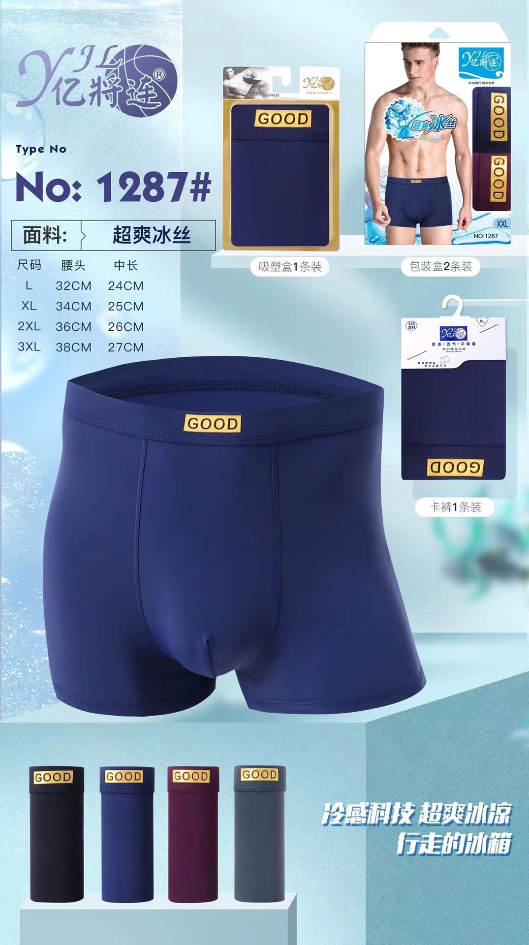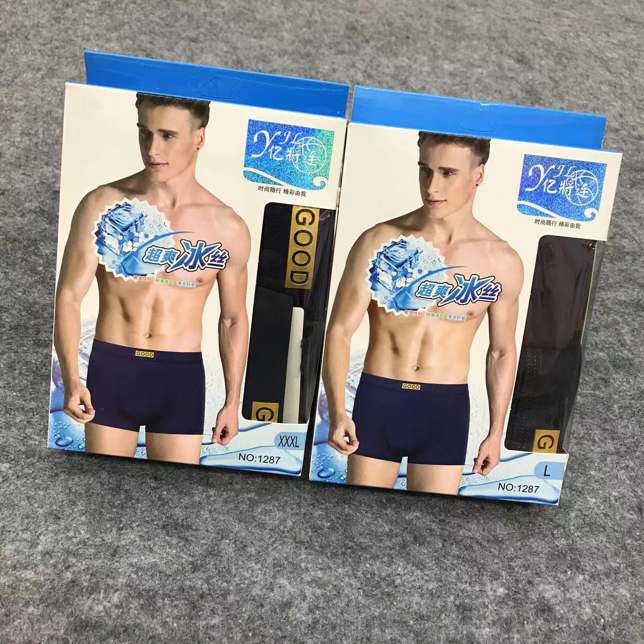 Yijianglian 솔리드 컬러 아이스 실크 복서 팬티 편안한 남성 속옷 청소년 중간 허리 박스형 팬티 1287