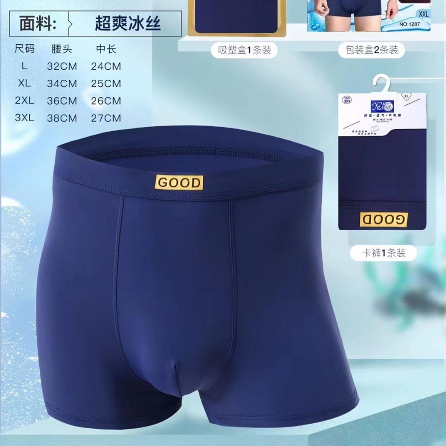 Yijianglian 솔리드 컬러 아이스 실크 복서 팬티 편안한 남성 속옷 청소년 중간 허리 박스형 팬티 1287스토어 가기