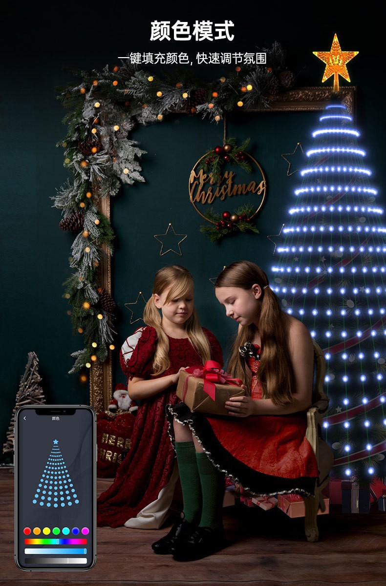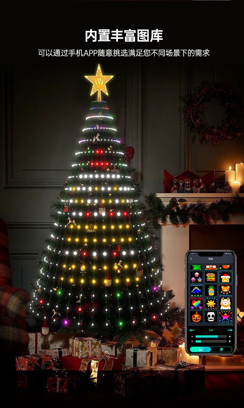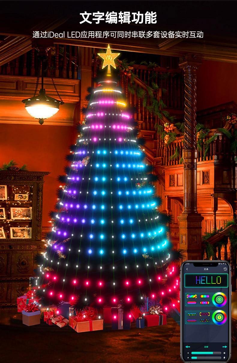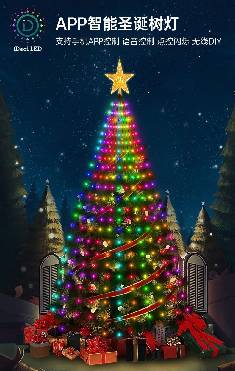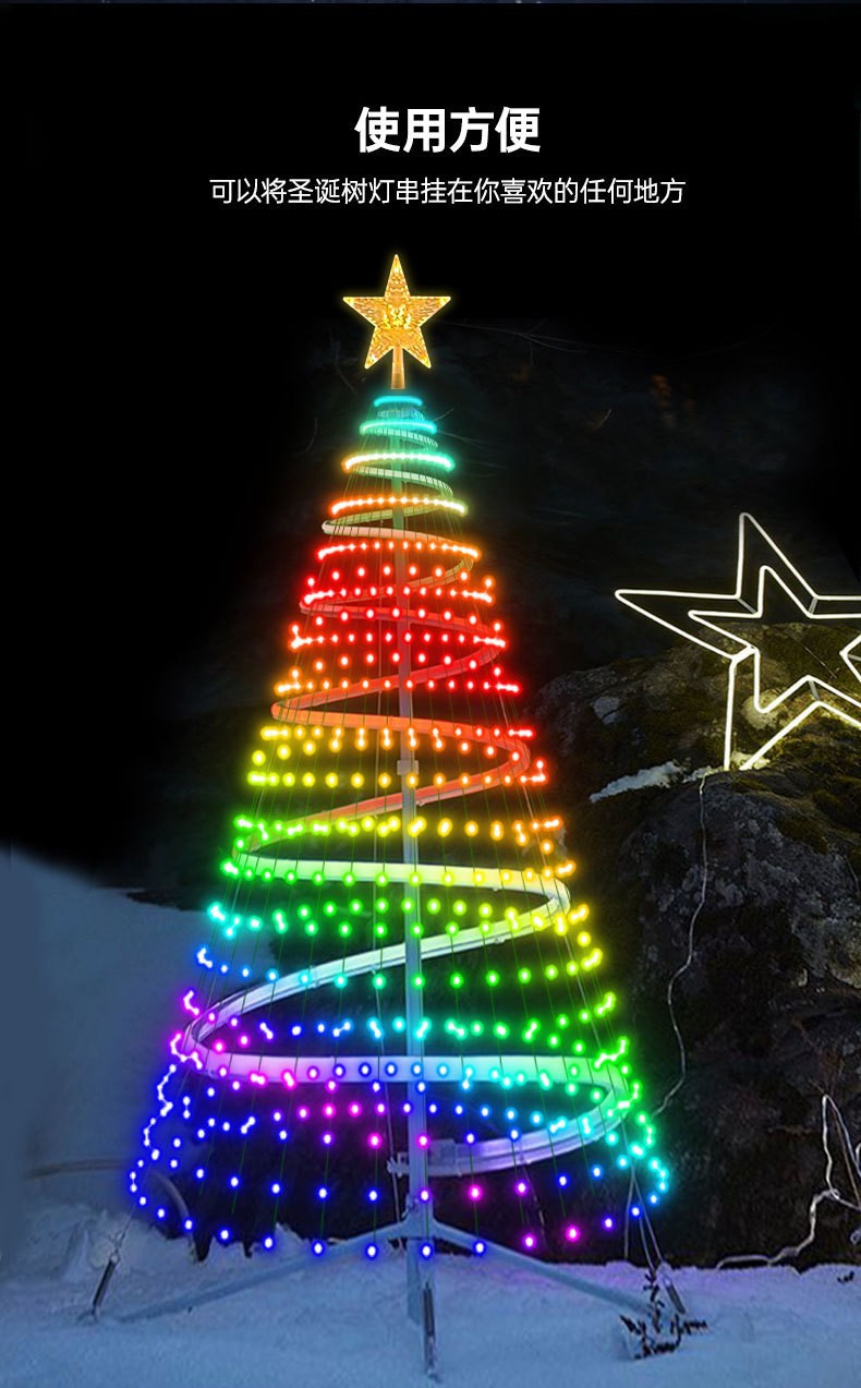 户外圣诞树灯串彩灯树灯发光圣诞树爆款圣诞树灯氛围灯太阳能灯串 原厂APP智能圣诞树灯蓝牙点控幻彩LED皮线灯串圣诞节日装饰氛围灯 防水圣诞树装饰灯 智能圣诞树 app圣诞树装饰灯