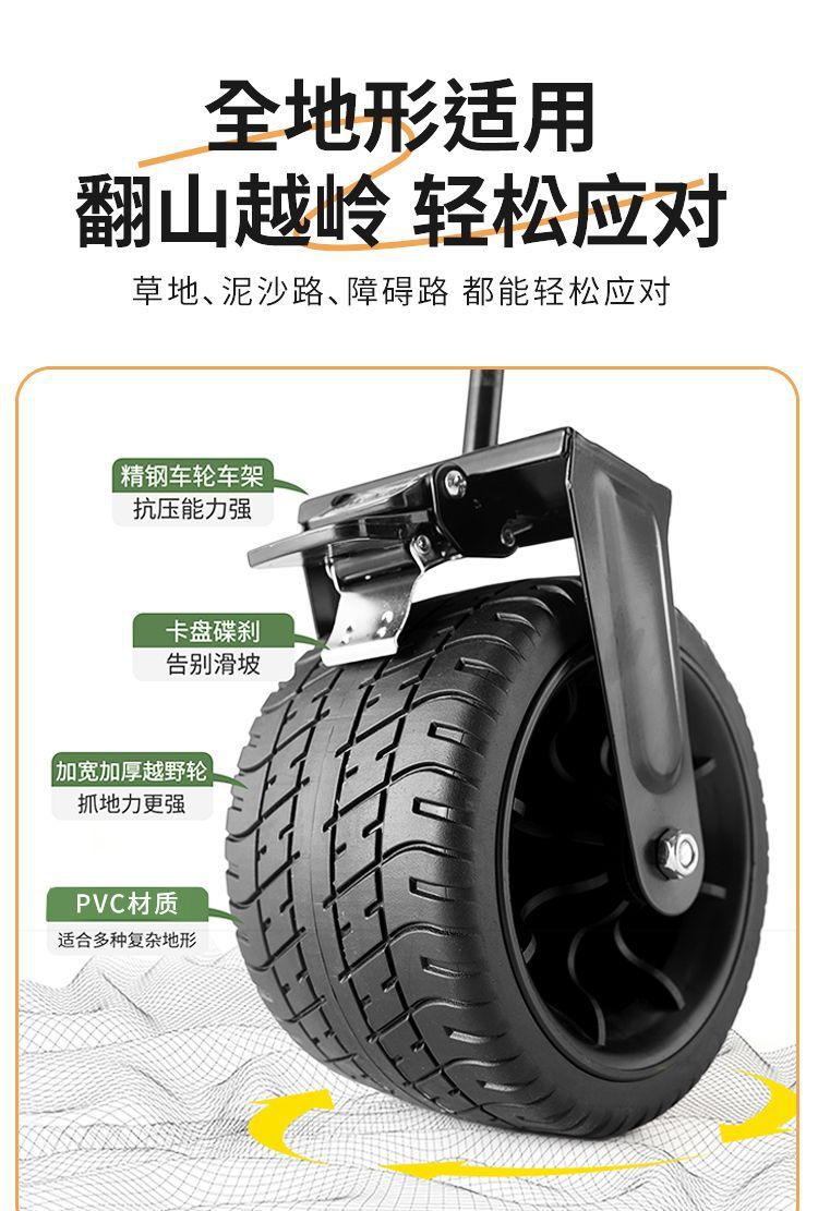 • [클래식 블랙] 더블 브레이크 후면 개방형 강화 시트 [대형 충격 흡수 휠 카트]
