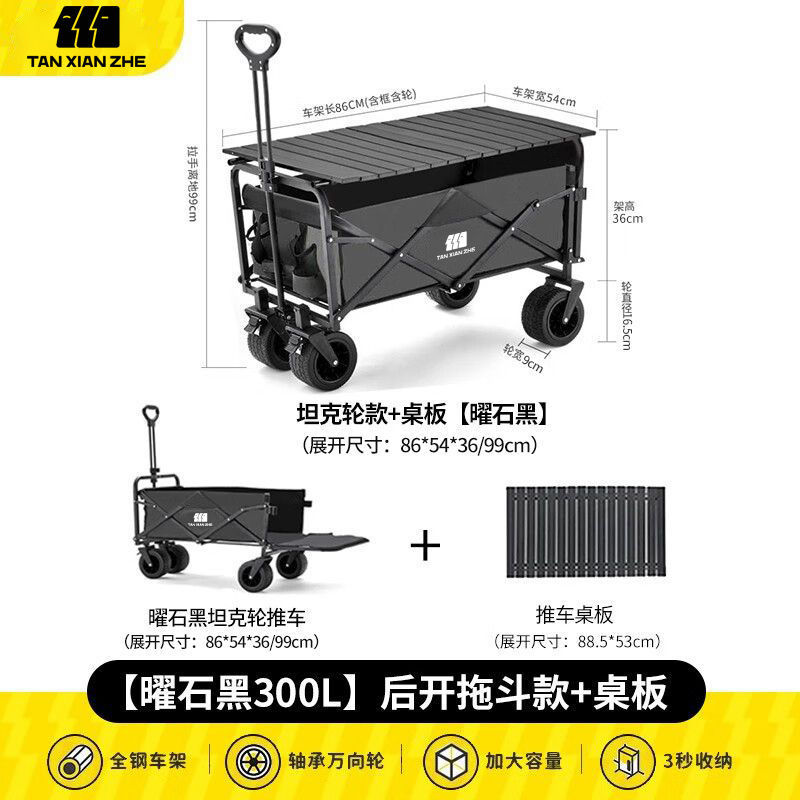 • 브레이크 후면 개방형 강화 시트 [대형 충격 흡수 휠 카트] 테이블 패키지 블랙