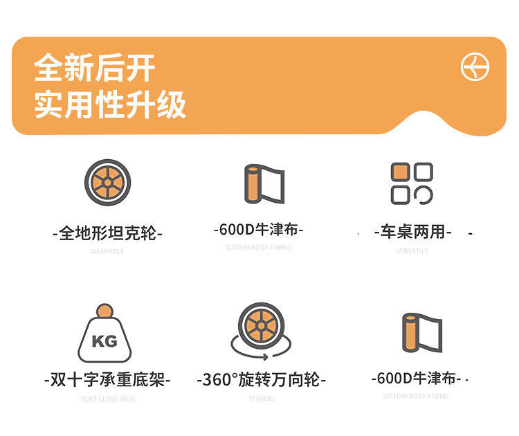 • [로고 스타일] 부드러운 무음 휠 [중형 접이식 후면 개방형 테이블]