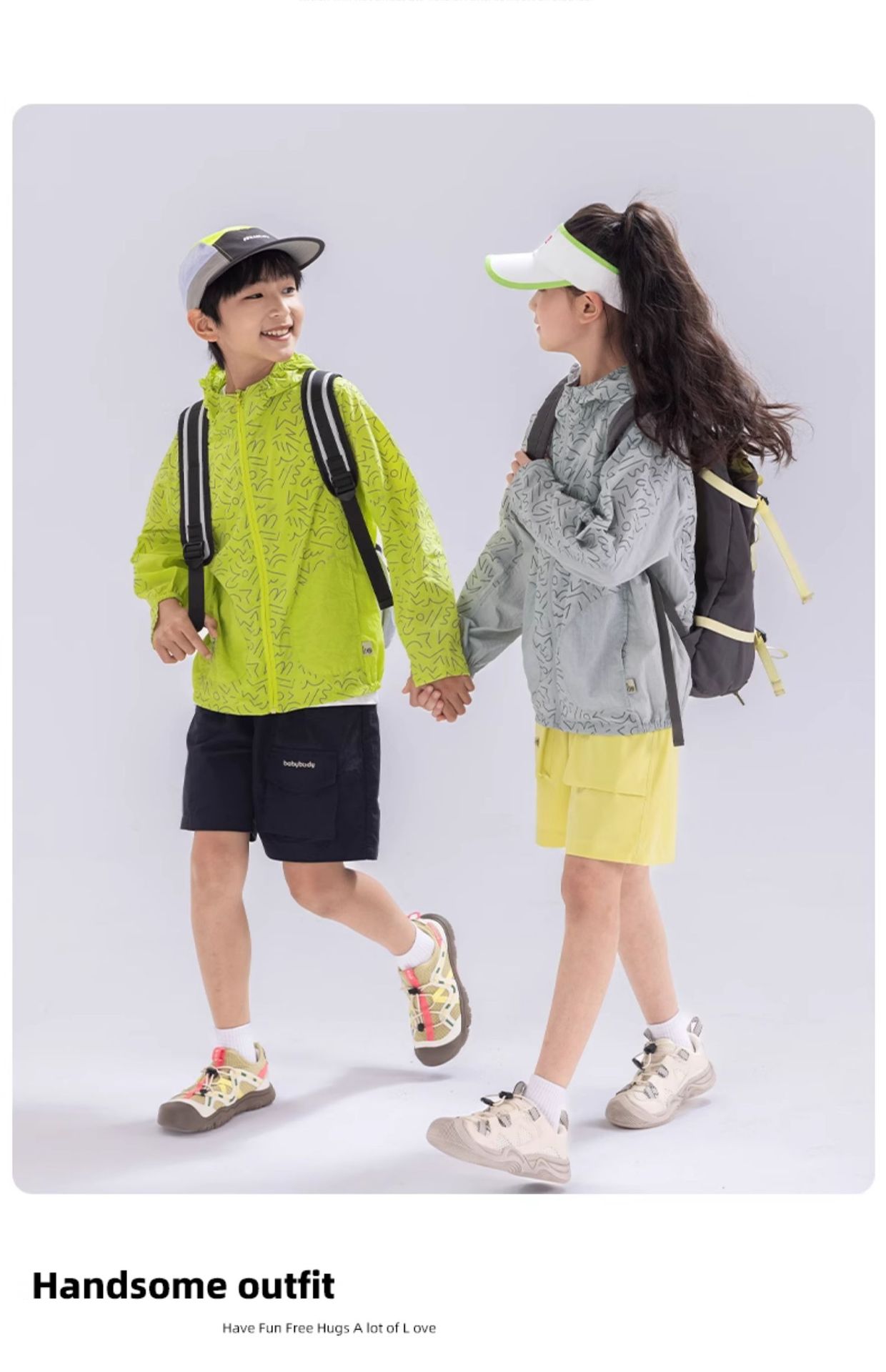 어린이 선 스크린 의류 여름 얇은 2025 새로운 서양식 빛나는 소년과 소녀 방수 선 스크린 의류 통기성 탑스토어 가기