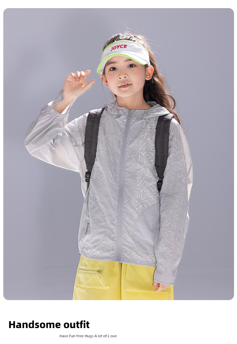 어린이 선 스크린 의류 여름 얇은 2025 새로운 서양식 빛나는 소년과 소녀 방수 선 스크린 의류 통기성 탑