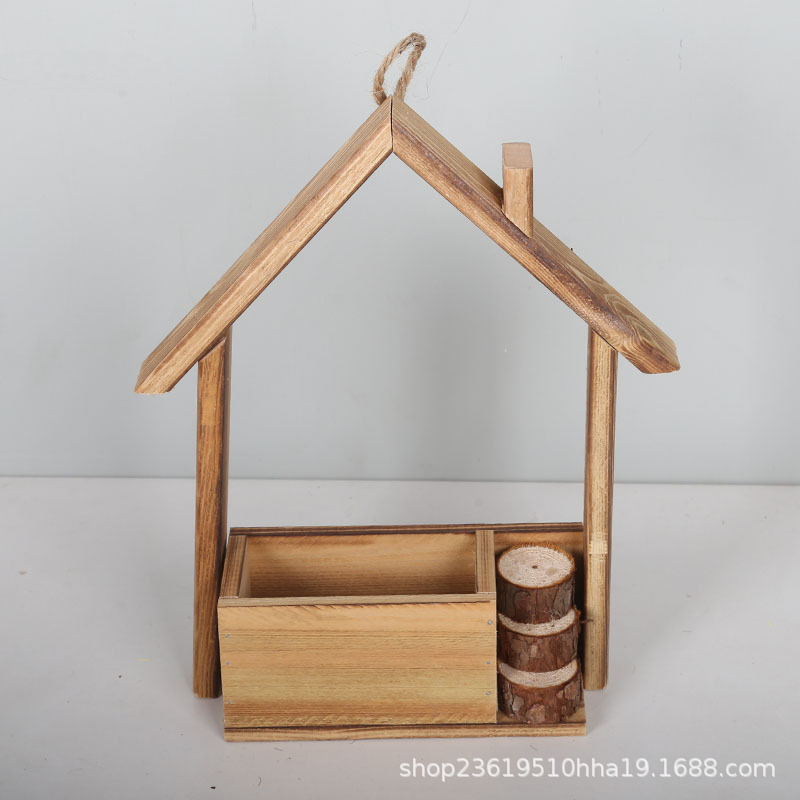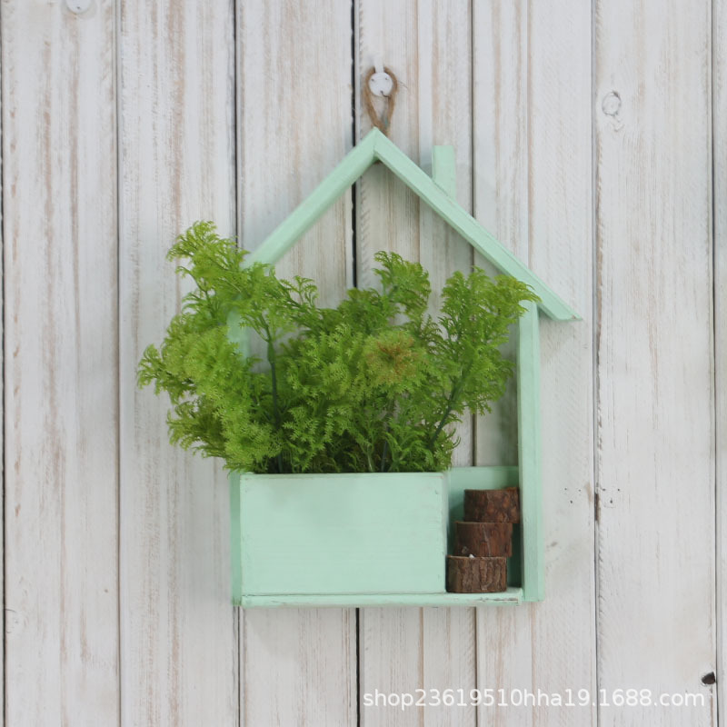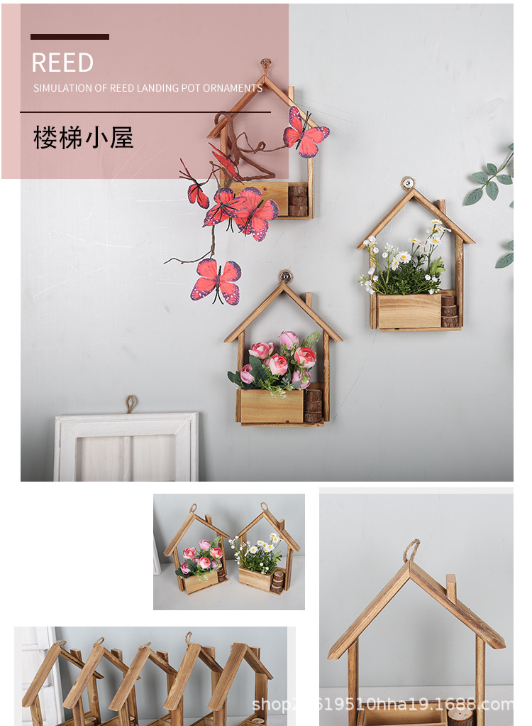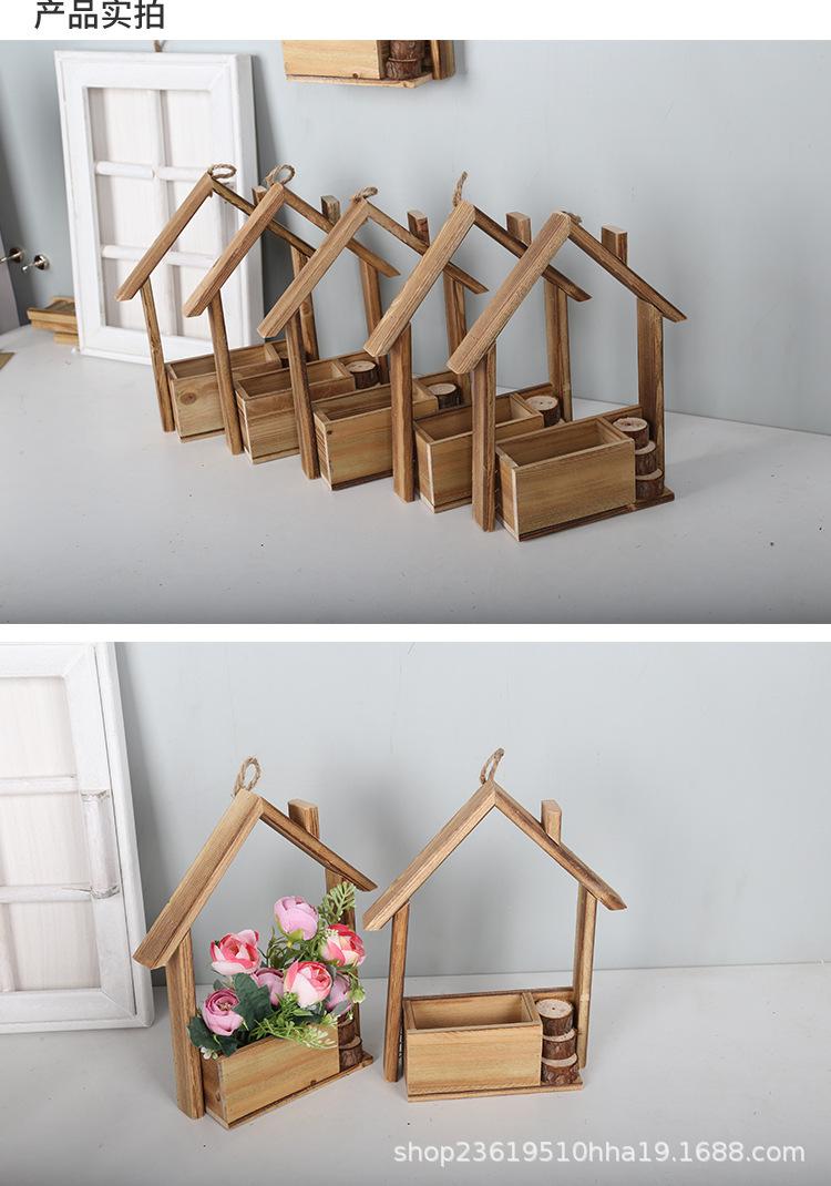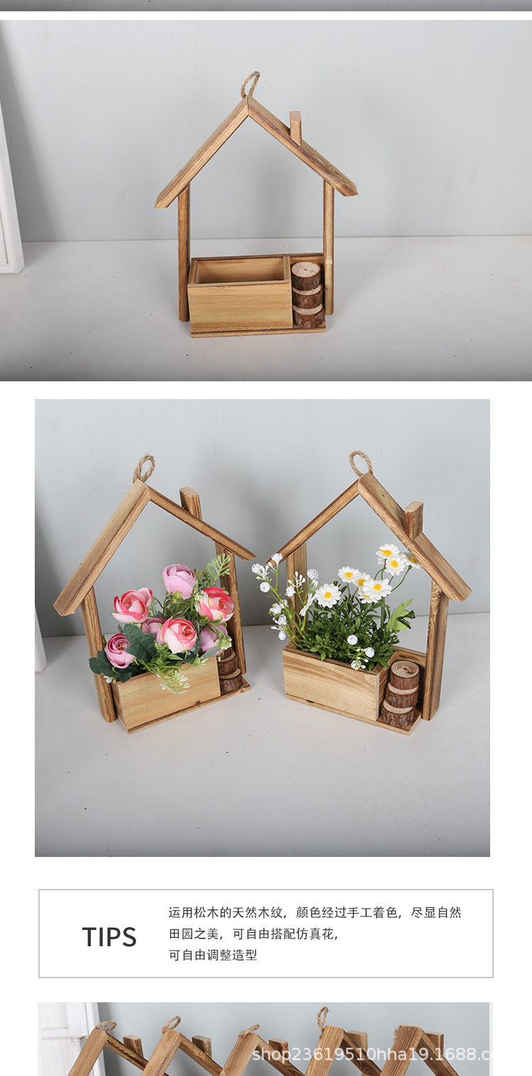 나무 작은 집 가정 장식 목가적 인 스타일 국경 간 시뮬레이션 꽃 냄비 꽃 바구니 벽 벽 벽 교수형 제조 업체스토어 가기
