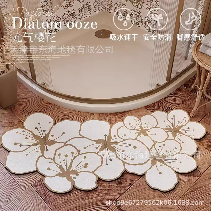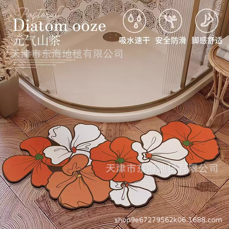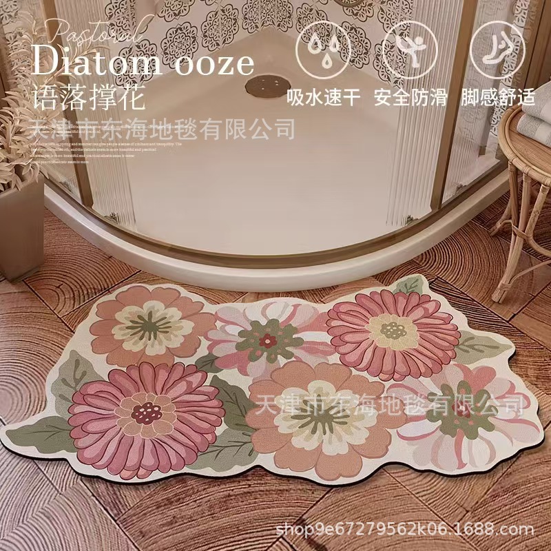 욕실 바닥 매트 곡선 흡수성 미끄럼 방지 발 매트 욕실 도어 Diatom 진흙 매트 팬 모양의 절단식 도어 매트스토어 가기