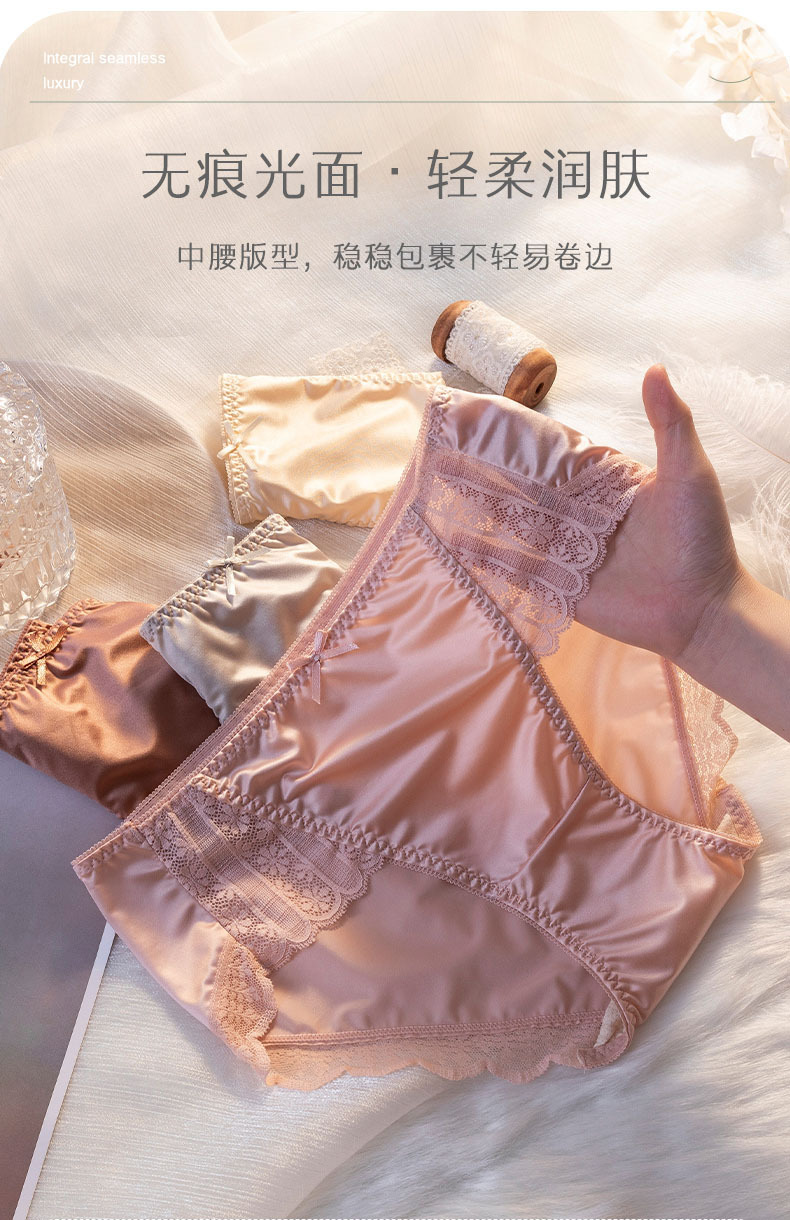 국경 간 플러스 사이즈 가벼운 럭셔리 새틴 섹시 레이스 속옷 여성의 중간 허리 감싸는 엉덩이 통기성 항균 Crotch 아이스 실크 브리프