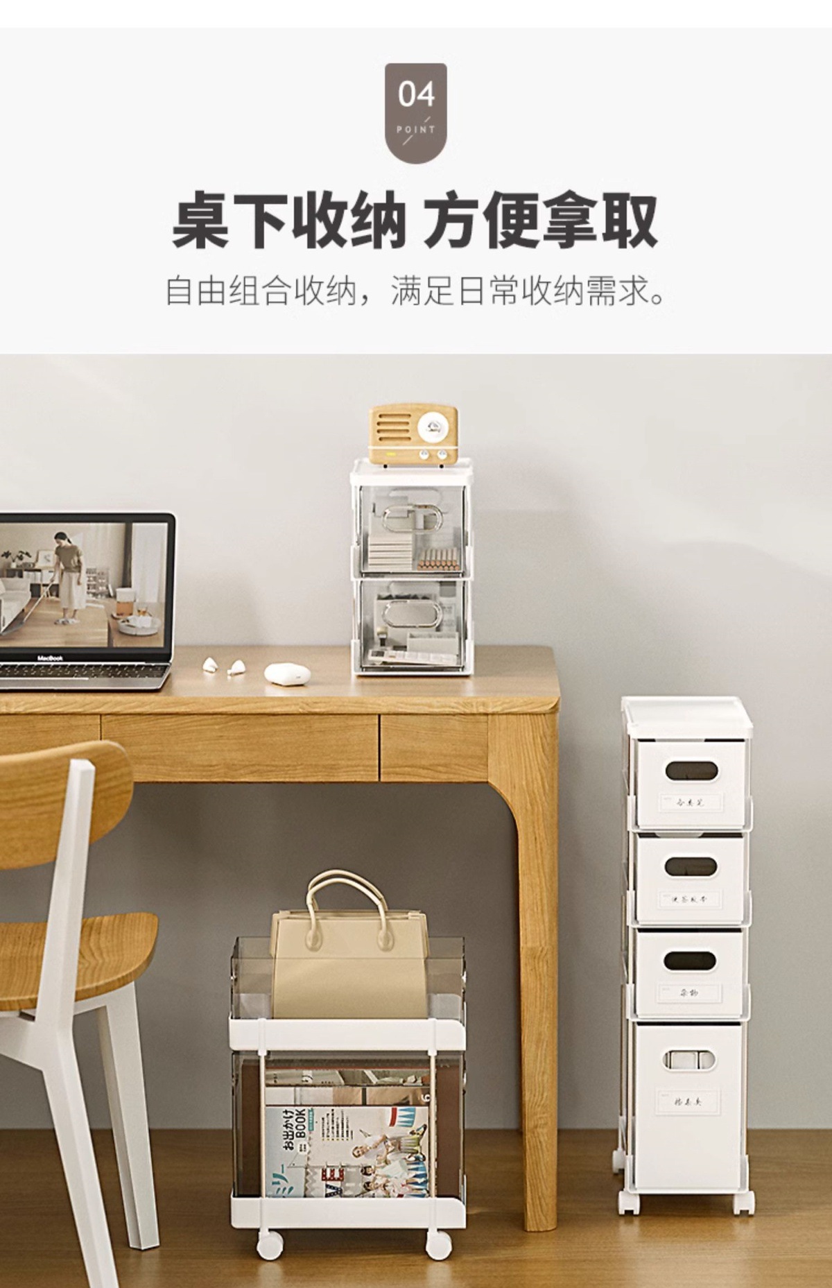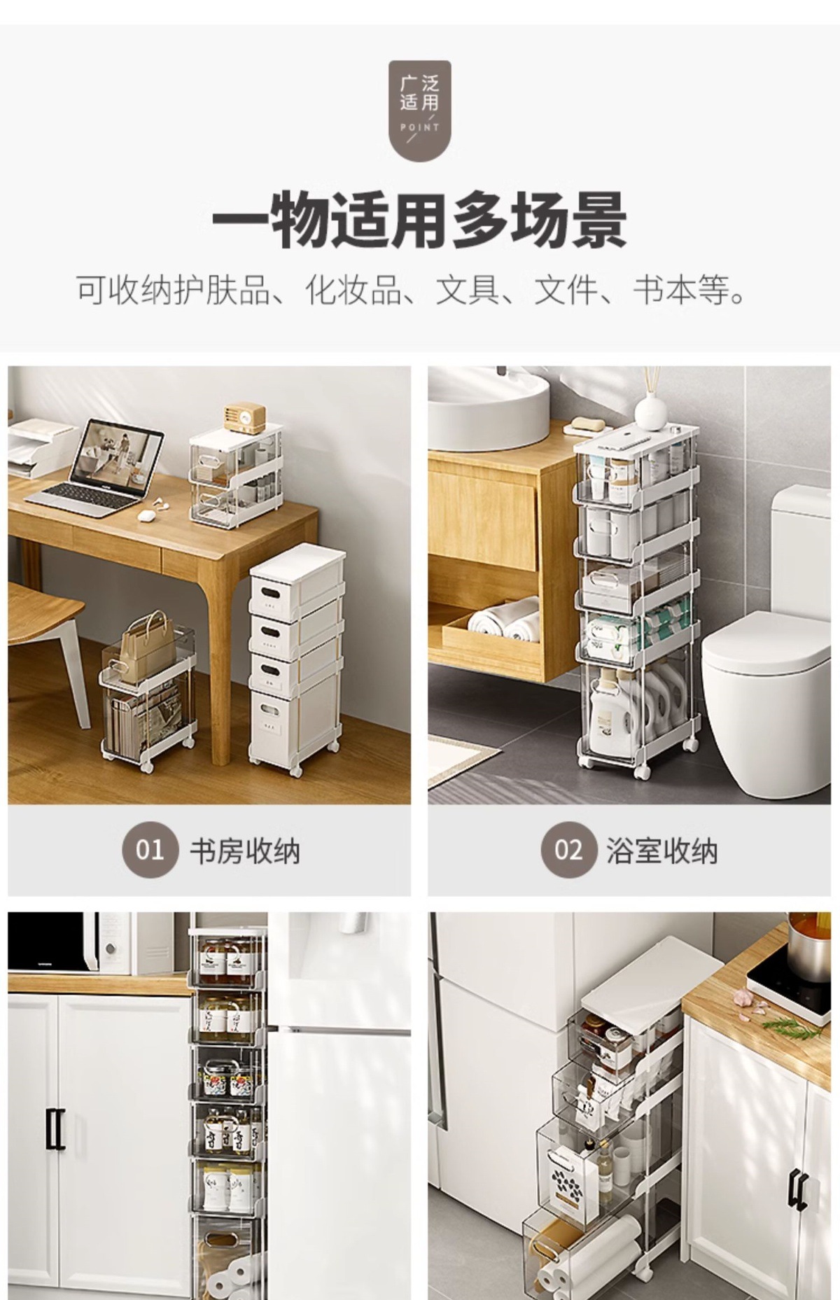 틈새수납장, 서랍형 침대 옆 이동식 틈새트롤리, 사무실 책상 밑에 책을 보관할 수 있는 선반